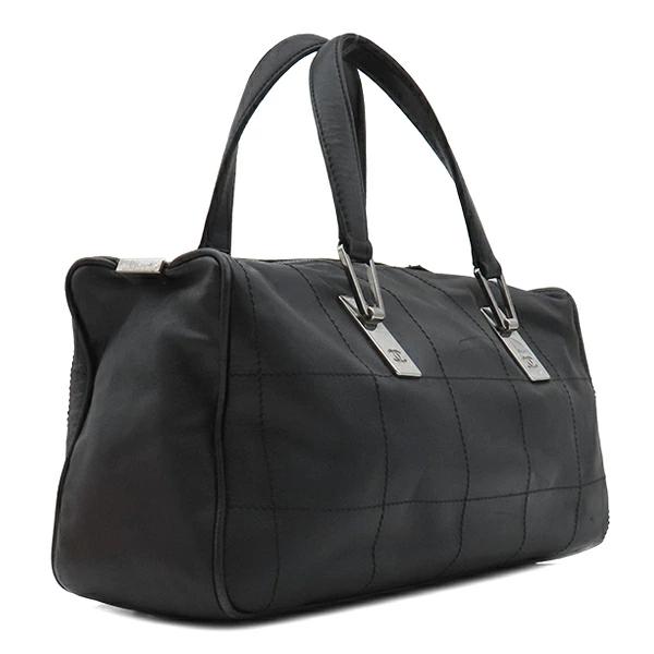 シャネル CHANEL ハンドバッグ チョコバー レザー ブラック 黒 ボストン シルバー金具 91***** - レディース 【中古】