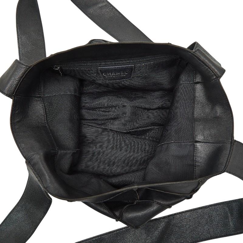 - シャネル チョコバー トートバッグ ブラック レザー レディース CHANEL 【中古】