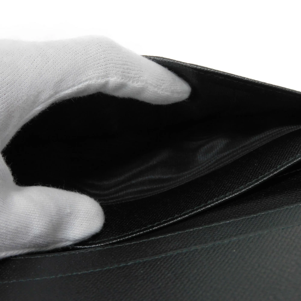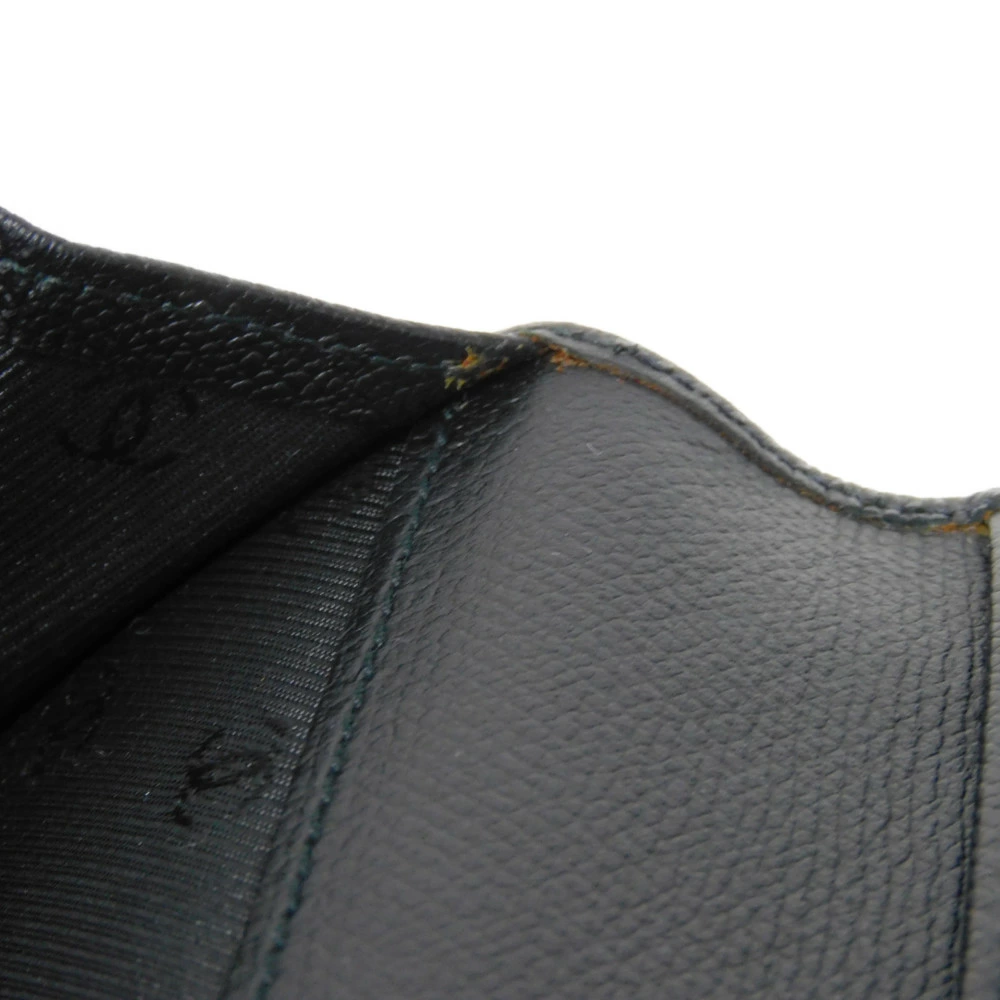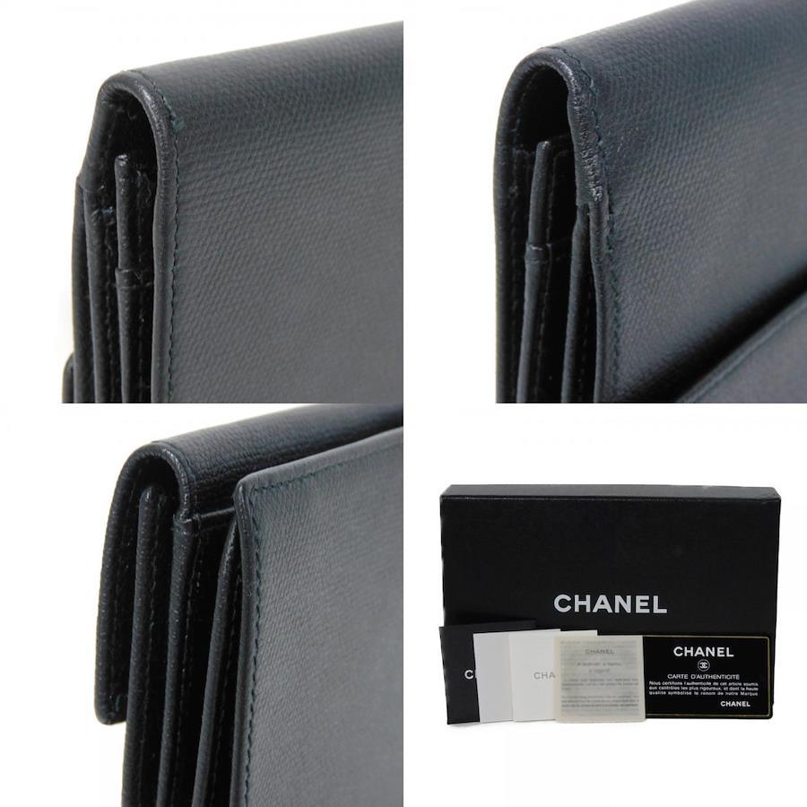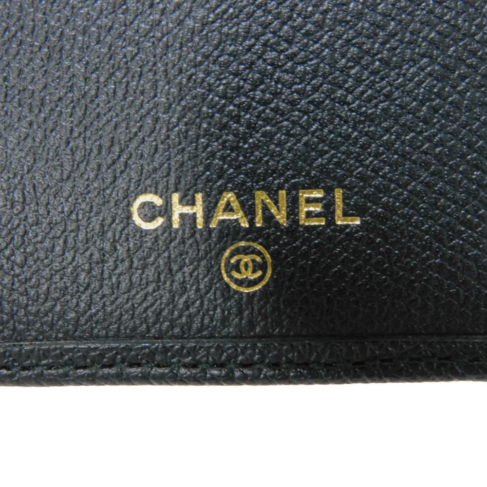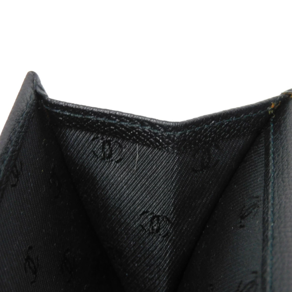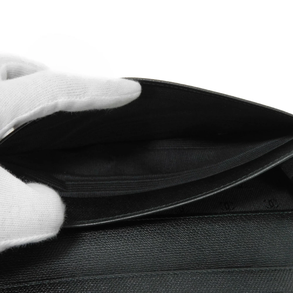 | 型押しカーフレザーにエナメル加工が施された、シャネルのココマークがあしらわれた「ココボタン ロング フラップ ウォレット」二つ折り長財布です。 |