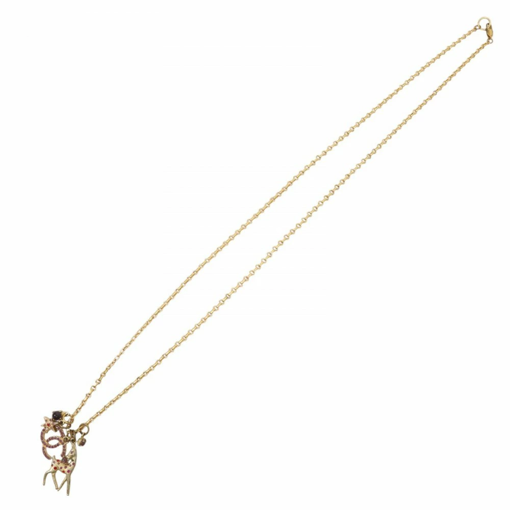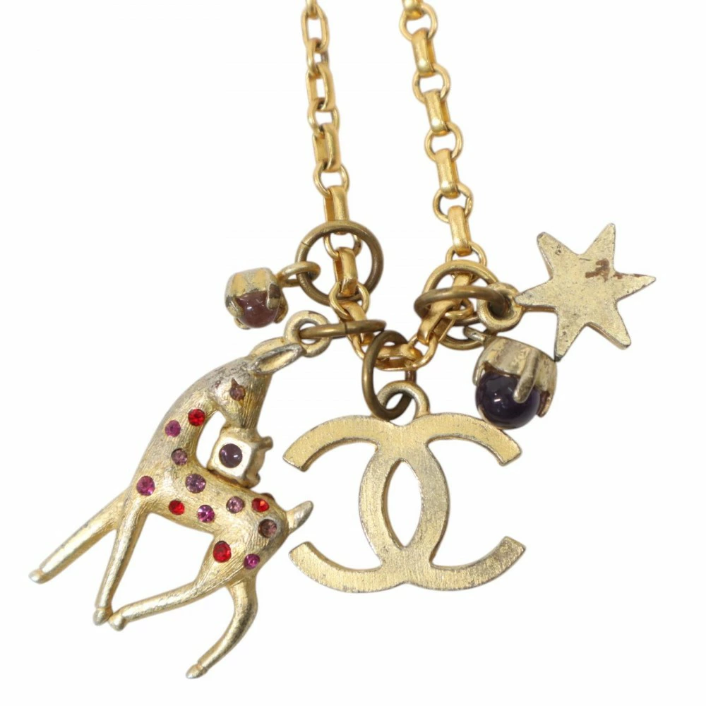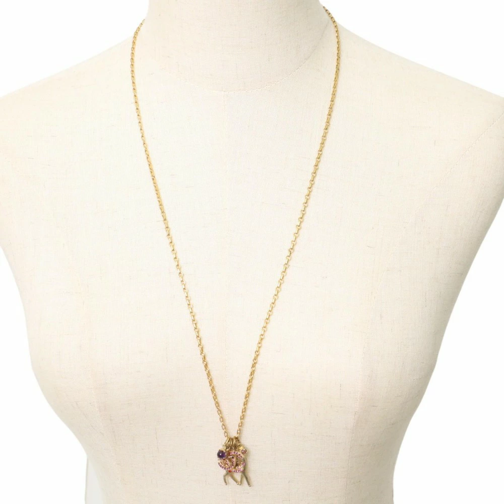 Pre-owned Chanel Coco Mark Bambi Long Necklace with GP Rhinestones, 01A Gold, Approximately 17.3g, 2001.
