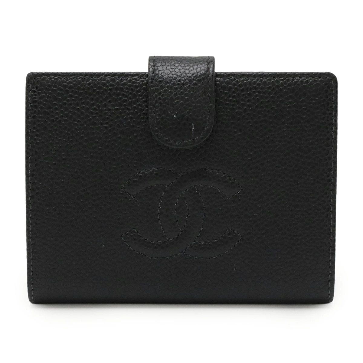 女性らしさ溢れるエレガントなデザインのキャビアスキン財布。