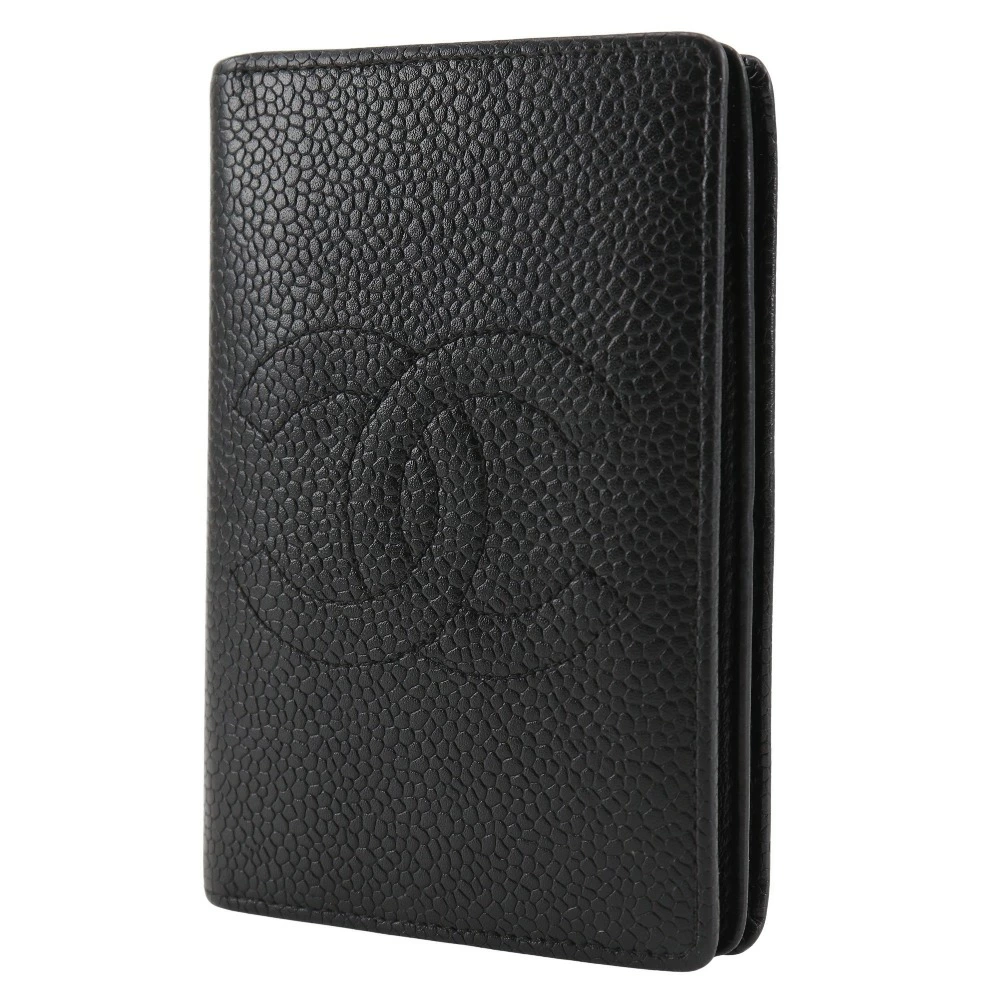 Pre-owned CHANEL COCO Mark business card holder, card case, caviar leather, made in France, black, open, women's, B-grade