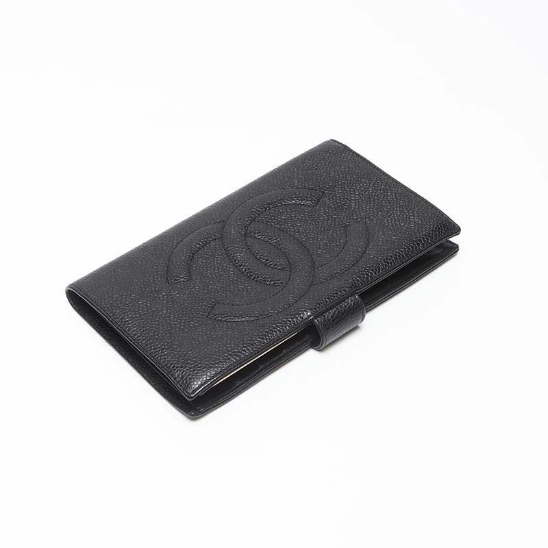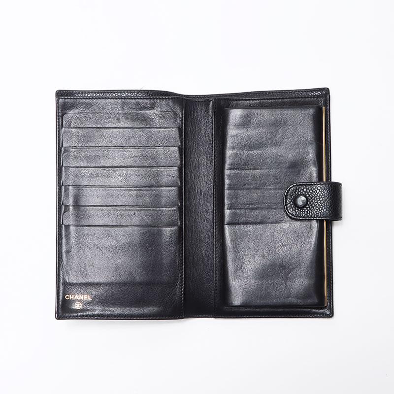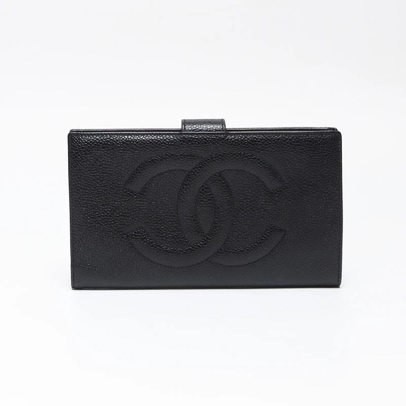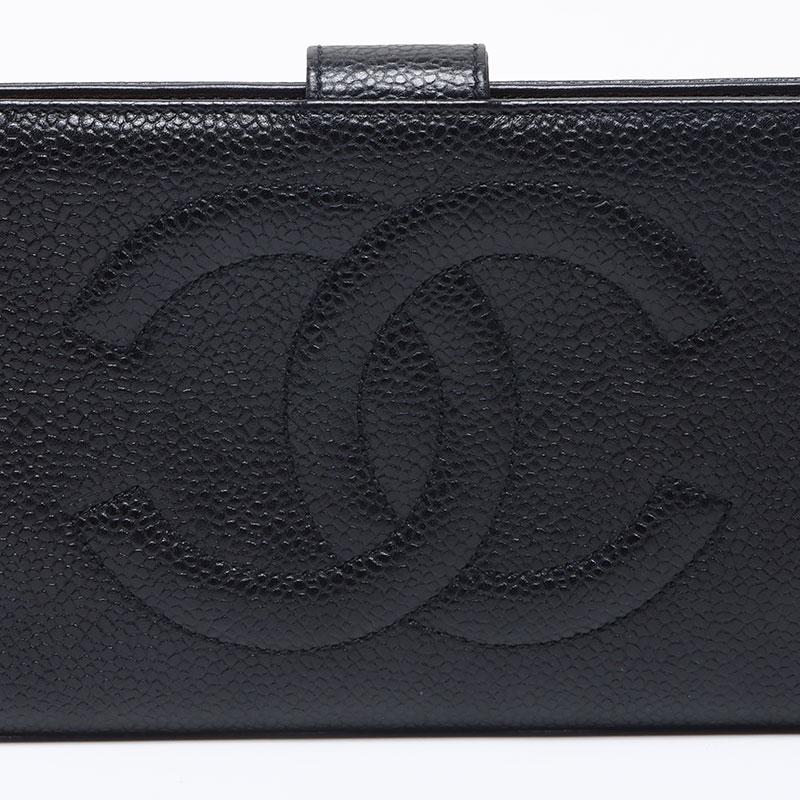 Pre-owned Chanel Coco Mark Caviar Leather Long Wallet, Black, WS13683, 1994-1996, Model No. 3