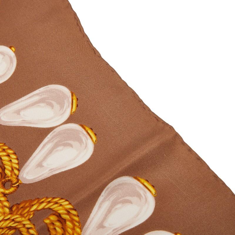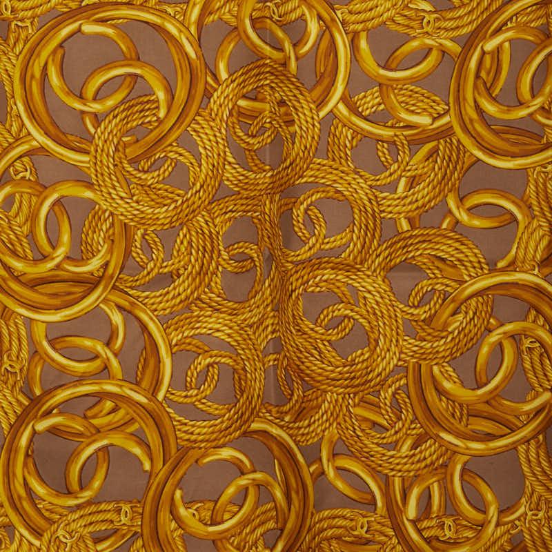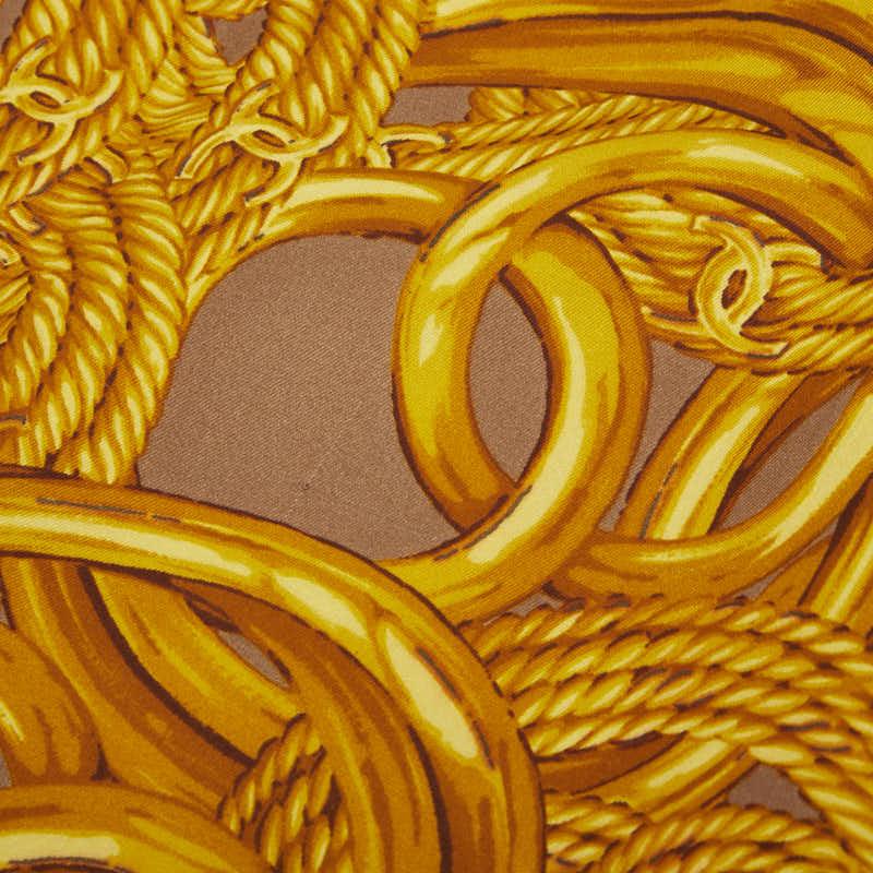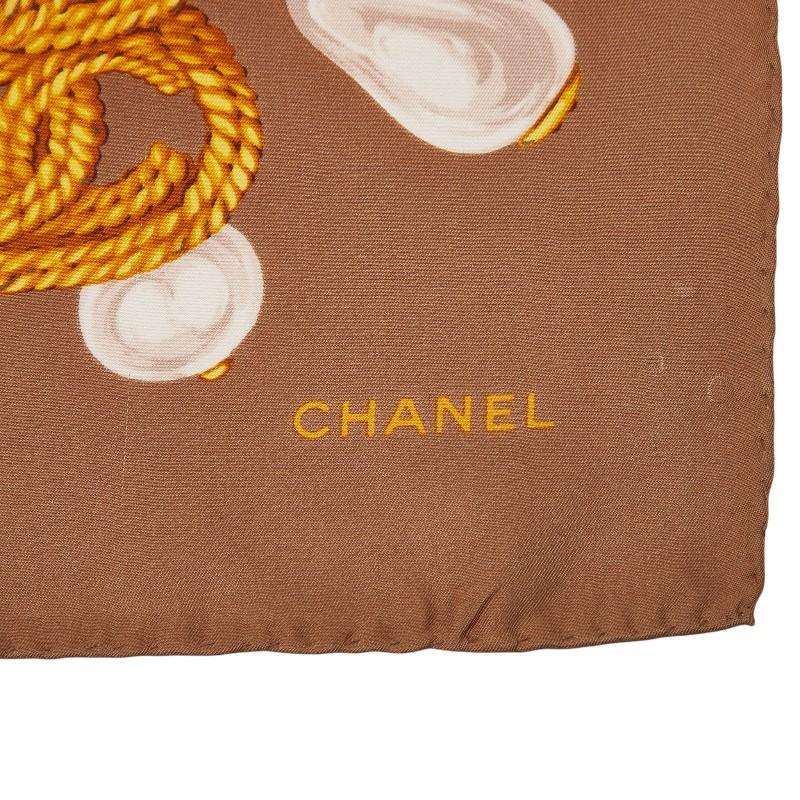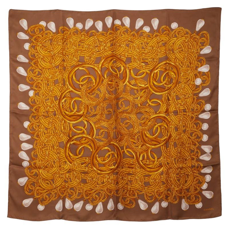 Pre-owned Chanel Coco Mark Chain Pearl Motif Scarf in Brown, Gold, and Multicolor Silk. Women's.