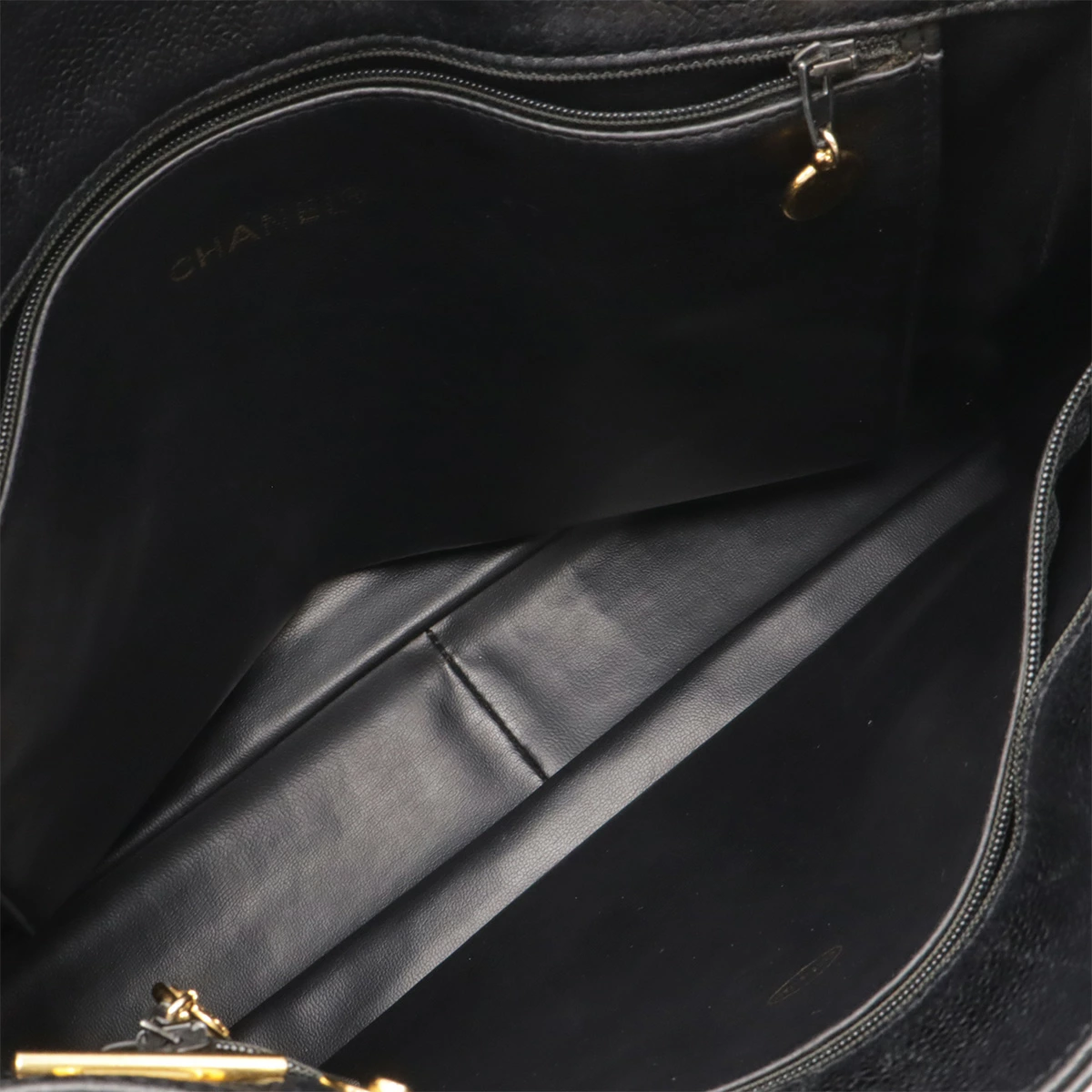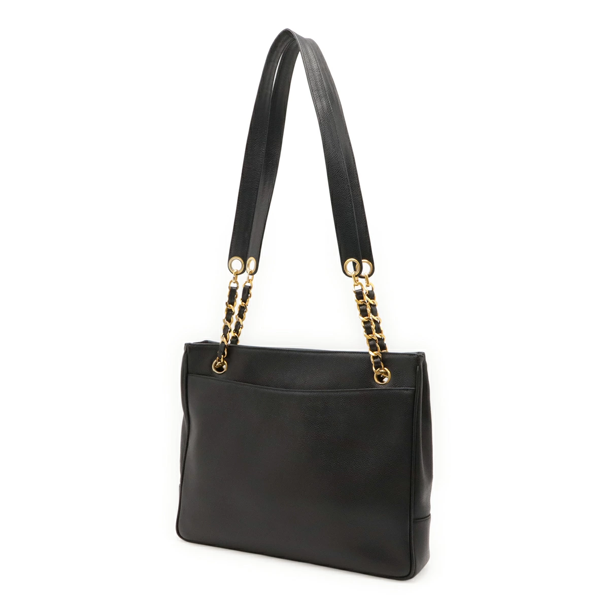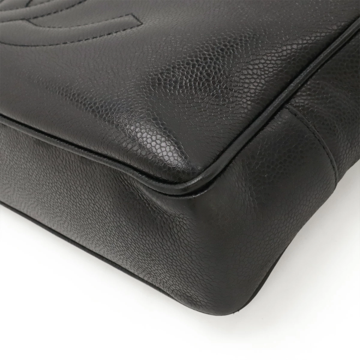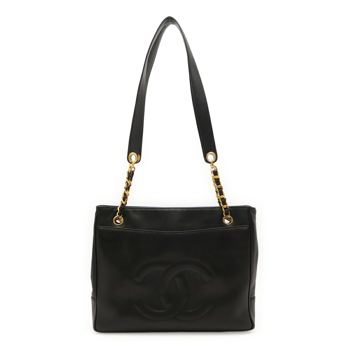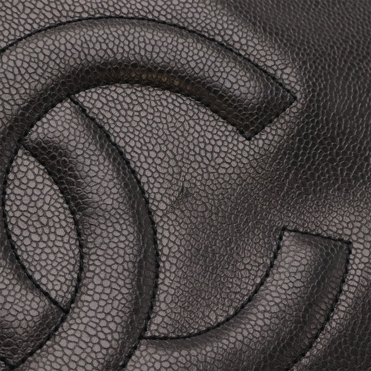 高級感のあるキャビアスキンに大きいココマークがシャネルらしいチェーンショルダーバッグ。