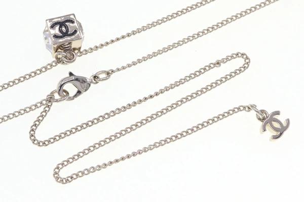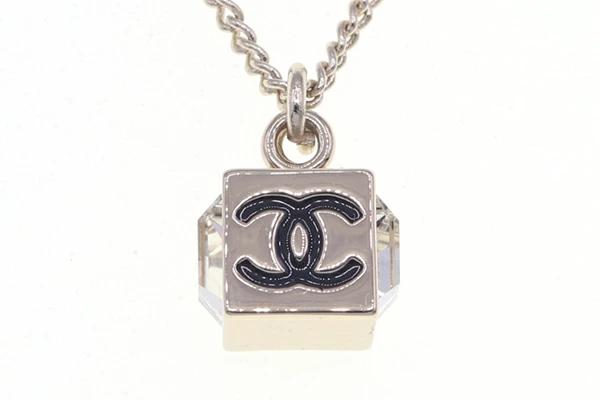 シャネルネックレスココマークキューブABE819B19204シャンパンゴールドクリアメタルストラスB25C2025年モデル中古ペンダントアクセサリーココマークラインストーンレディースCHANEL