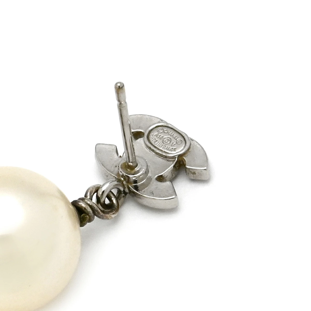 シャネル CHANEL ピアス ココマーク パール ココマーク メタル フェイクパール ラインストーン シルバー CCマーク A36138 レディース定番 人気 美品 【中古】
