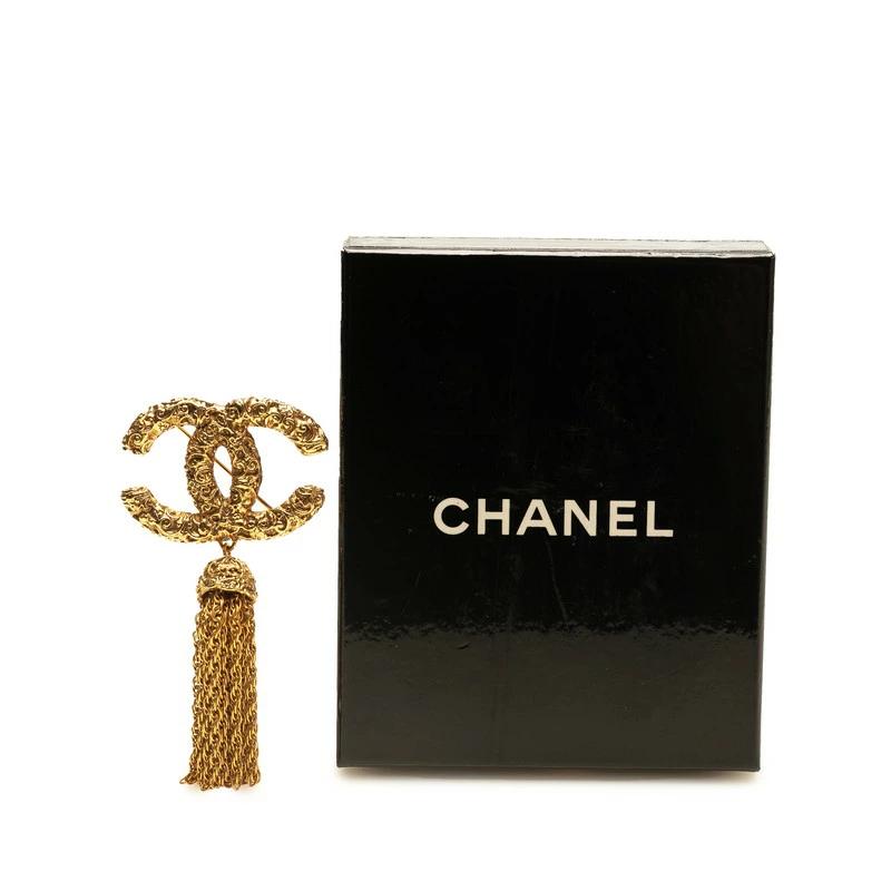 Pre-owned Chanel Coco Mark Fringe Lava Brooch, Gold Plated, Women's