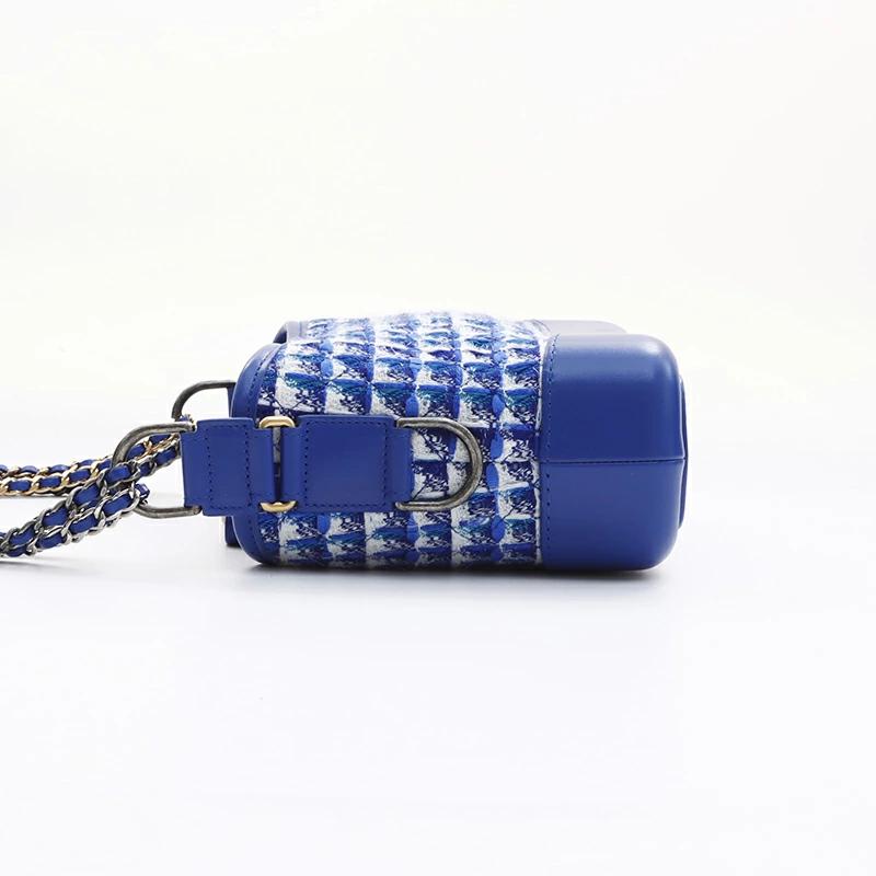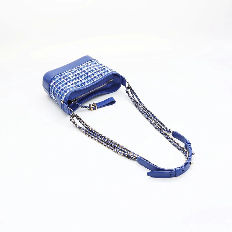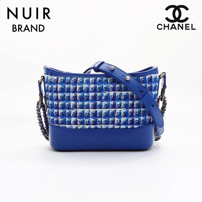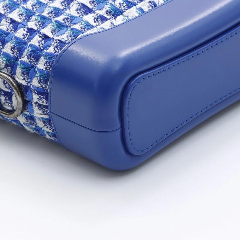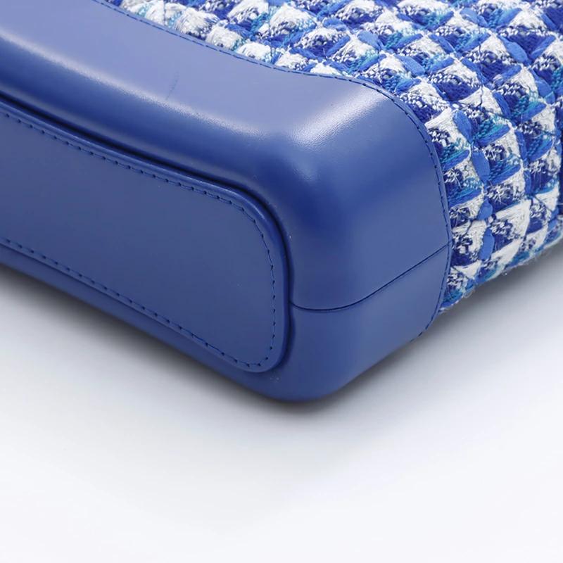 Pre-owned CHANEL Coco Mark Gabriel Tweed Long Chain Shoulder Bag, Blue and White, WS7530, No. 27
