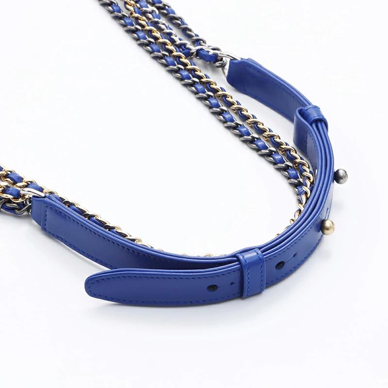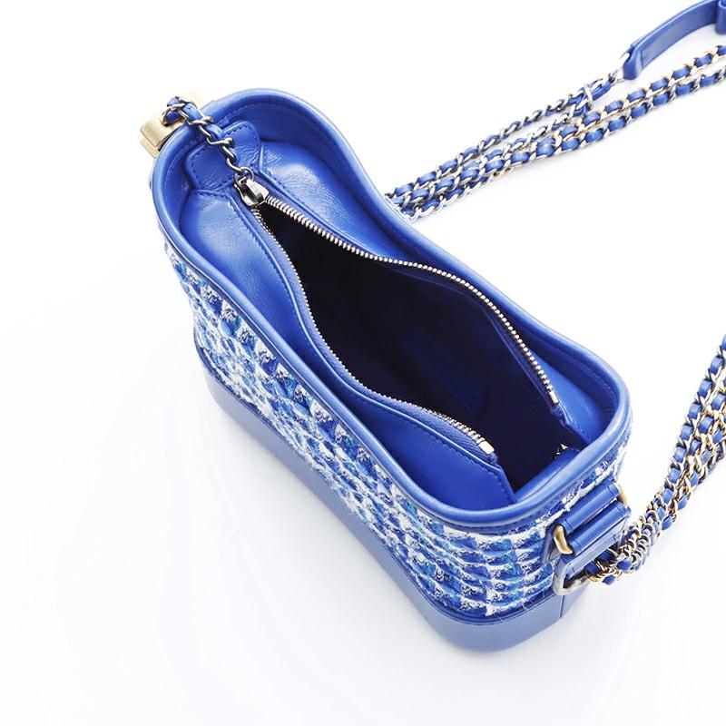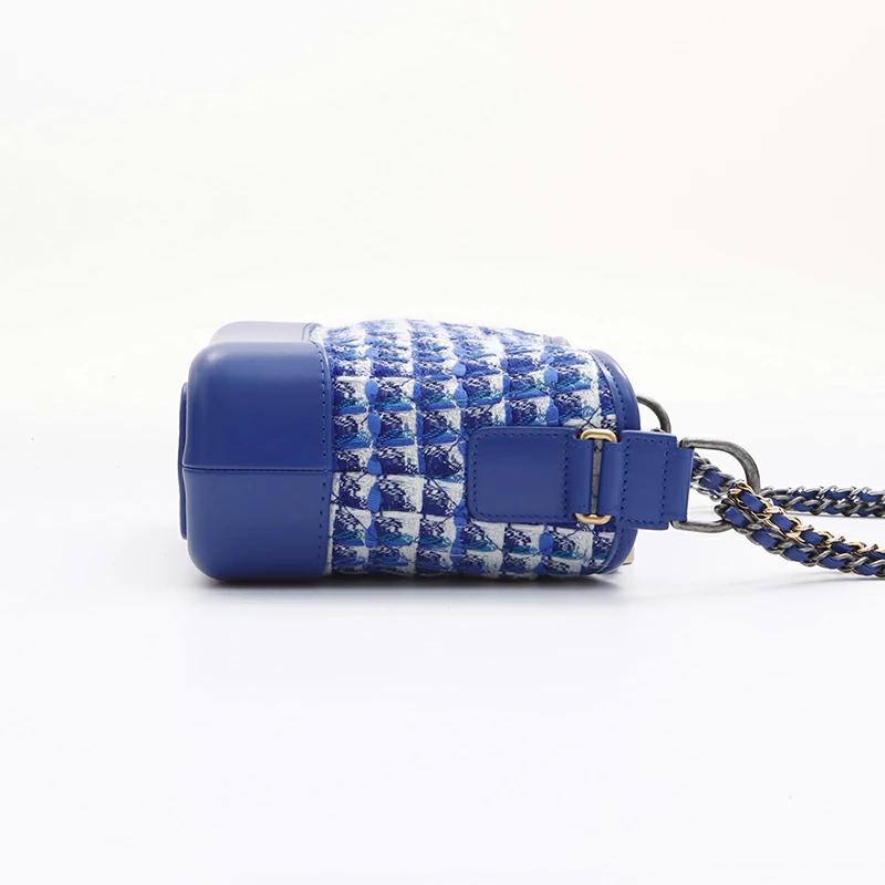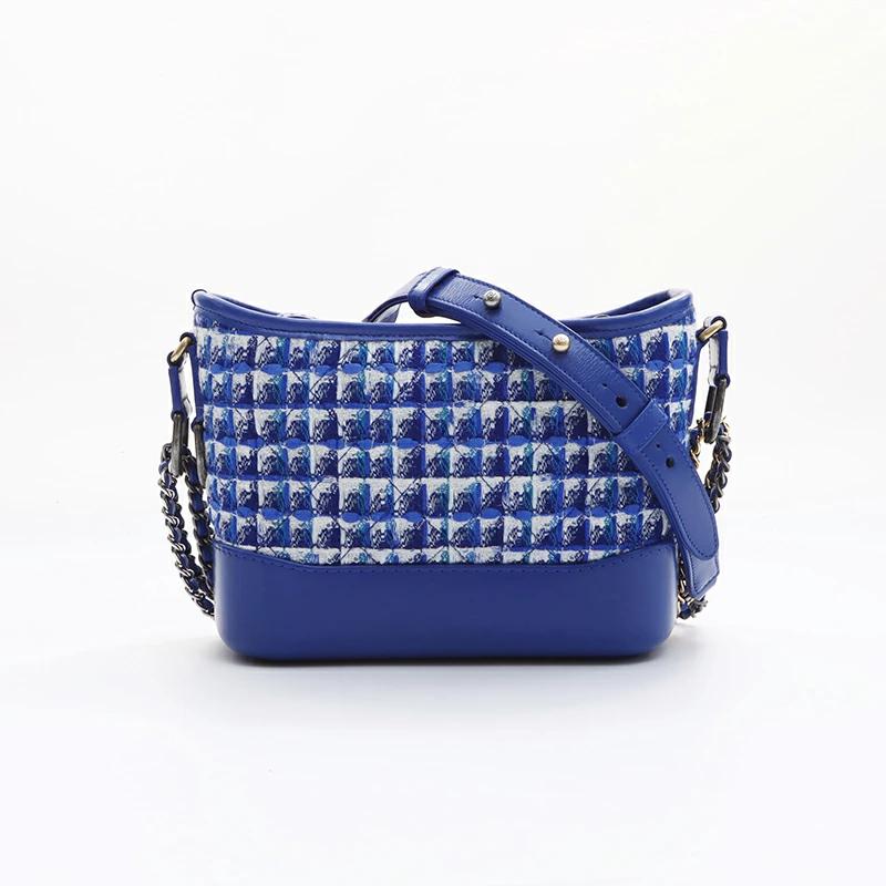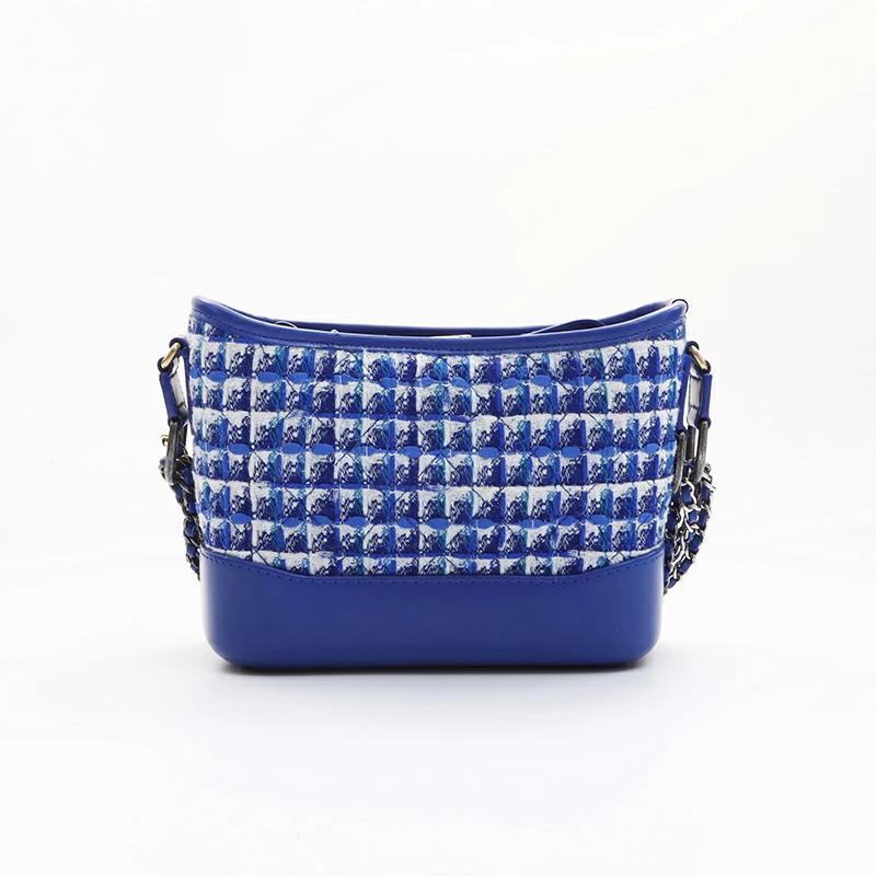 Pre-owned CHANEL Coco Mark Gabriel Tweed Long Chain Shoulder Bag, Blue and White, WS7530, No. 27