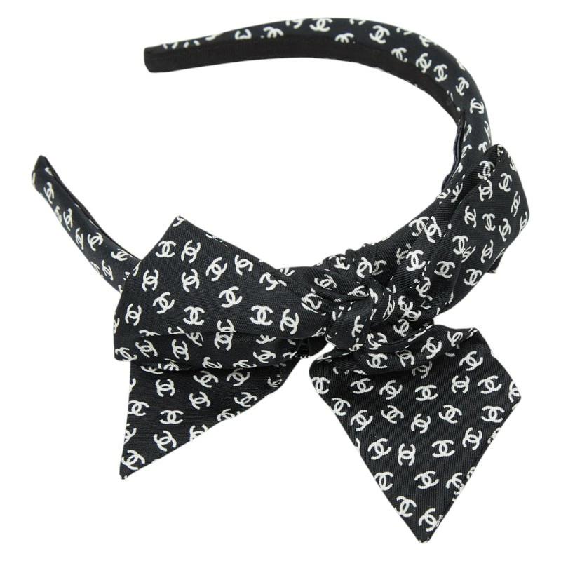 - シャネル ココマーク カチューシャ ヘアアクセサリー ブラック ホワイト シルク レディース CHANEL 【中古】