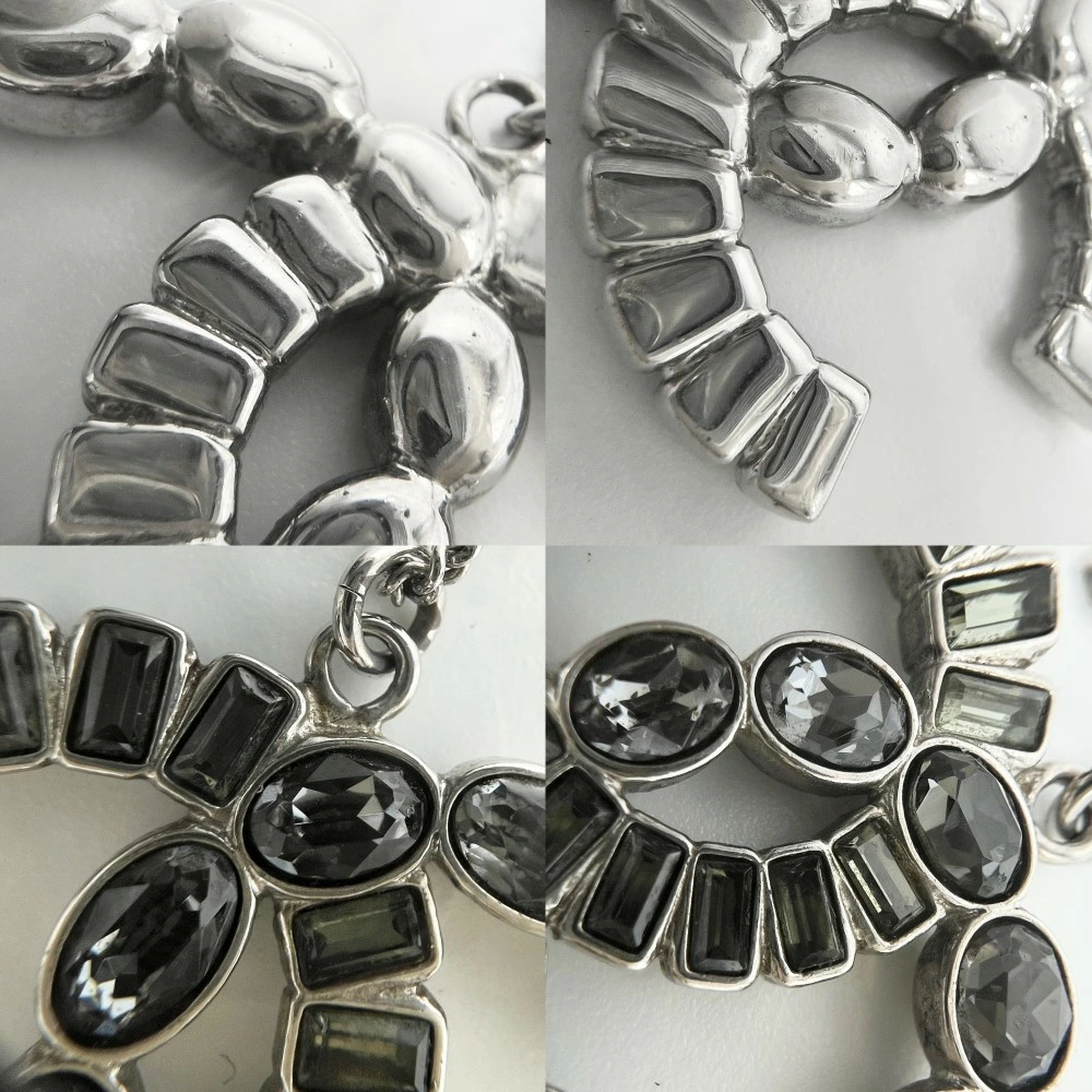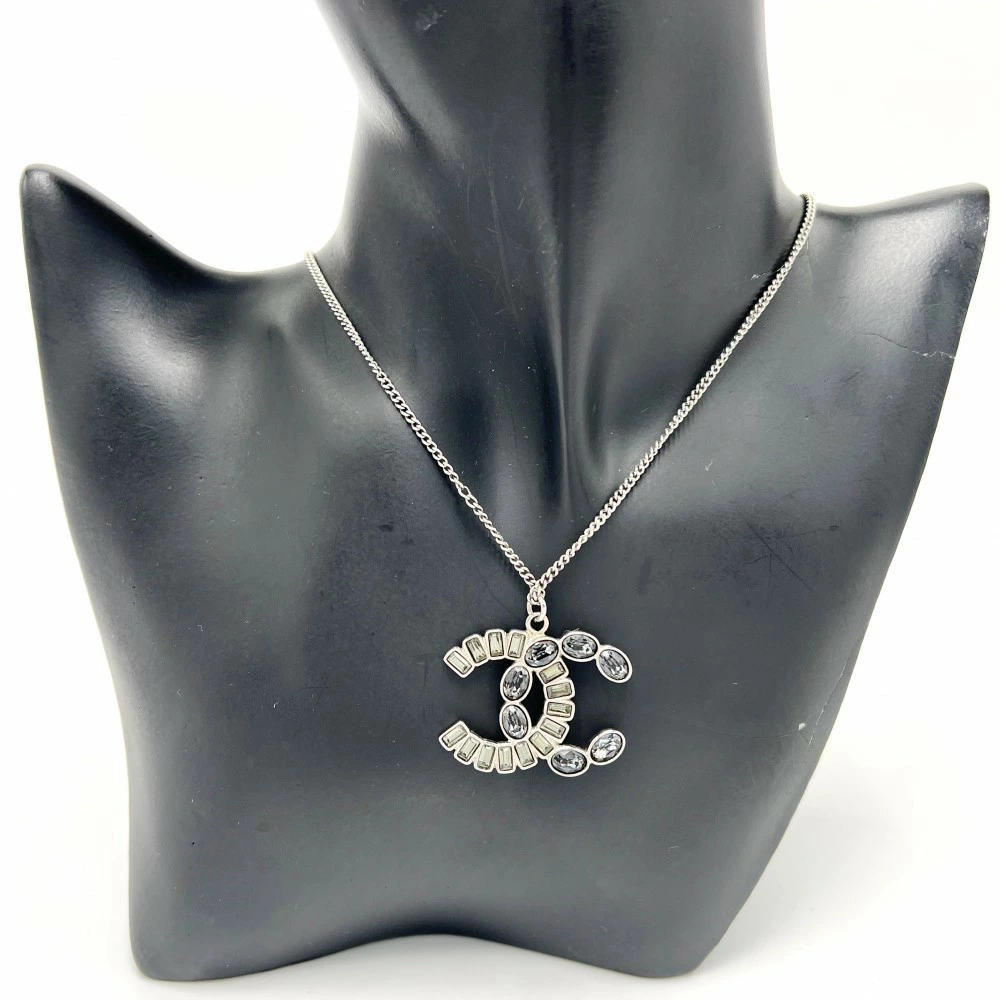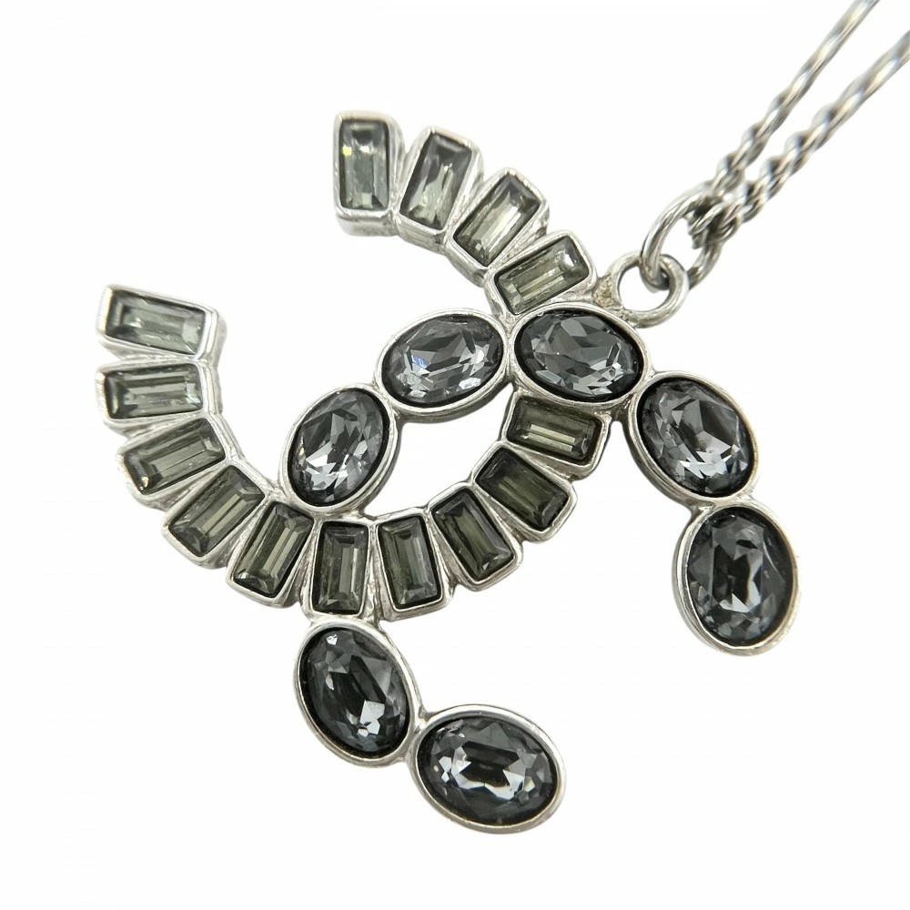 Pre-owned Chanel Coco Mark Long Necklace for Women, Silver, B17B, Rhinestones, Approx. 13.4g, 2017.