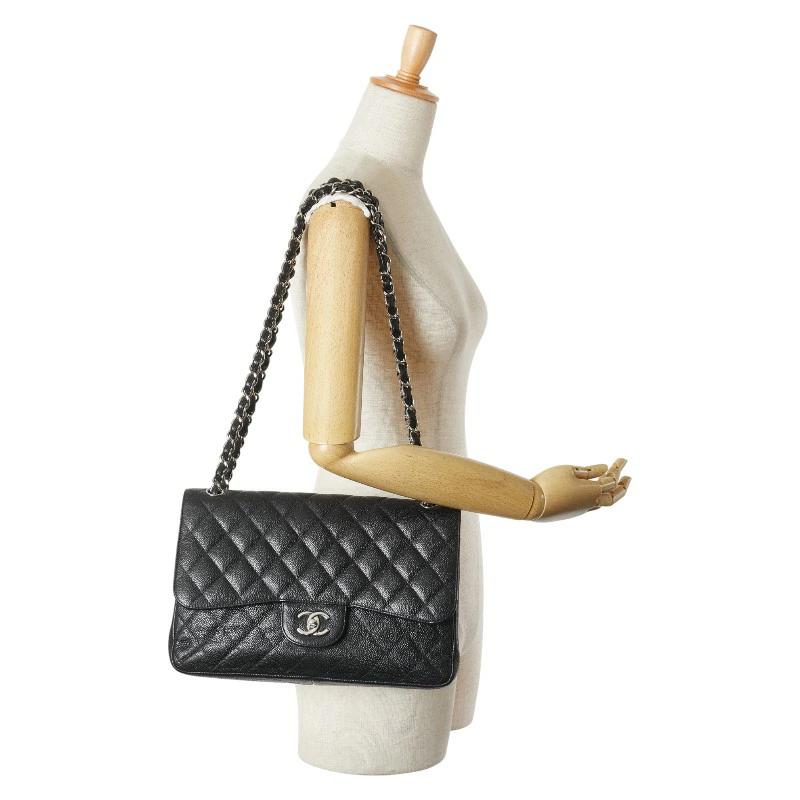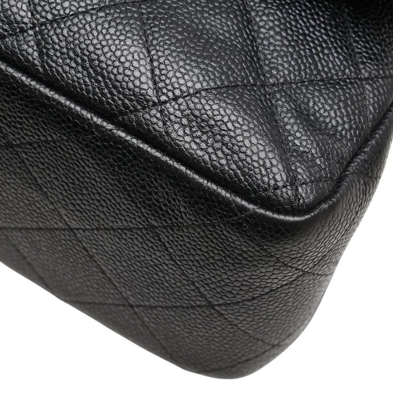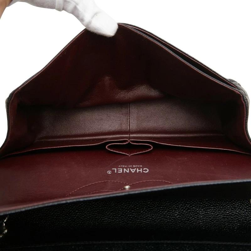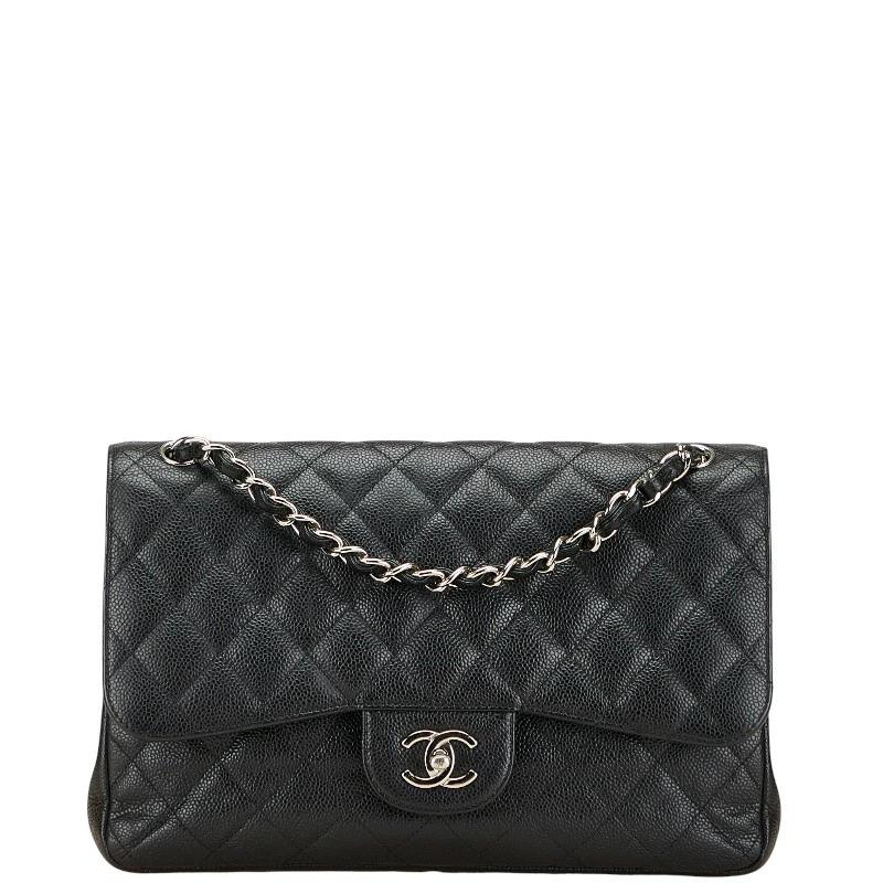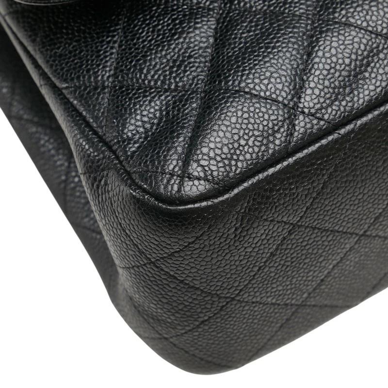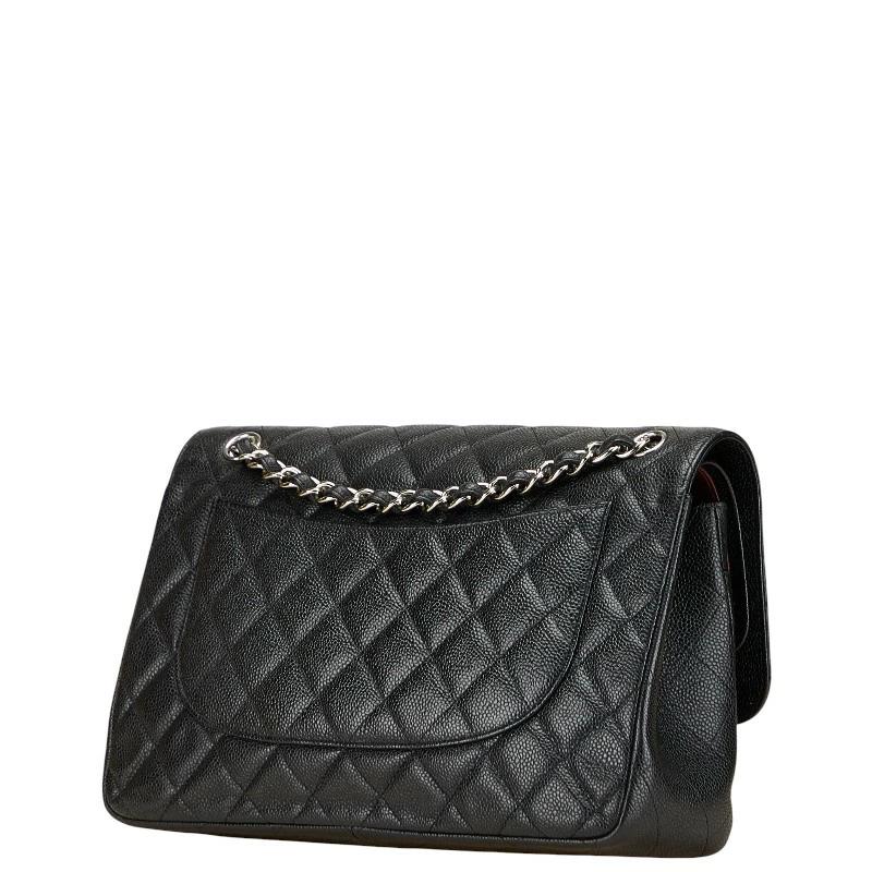 Pre-owned Chanel Coco Mark Matelasse 30 Double Flap Chain Shoulder Bag in Black Caviar Skin.