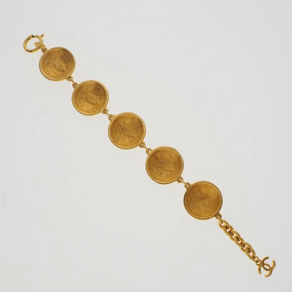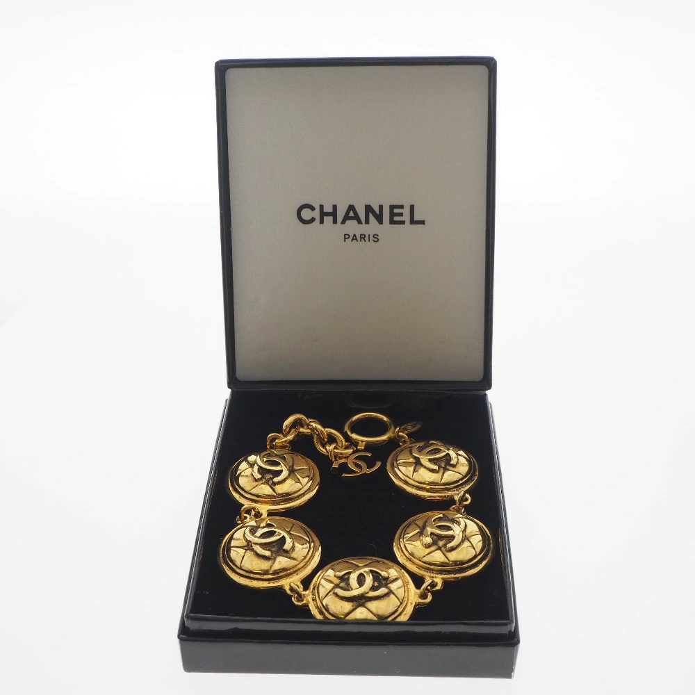 Pre-owned CHANEL Coco Mark Matelasse Bracelet, Vintage, Gold-Plated, Made in France, Approximately 71.2g, Women's