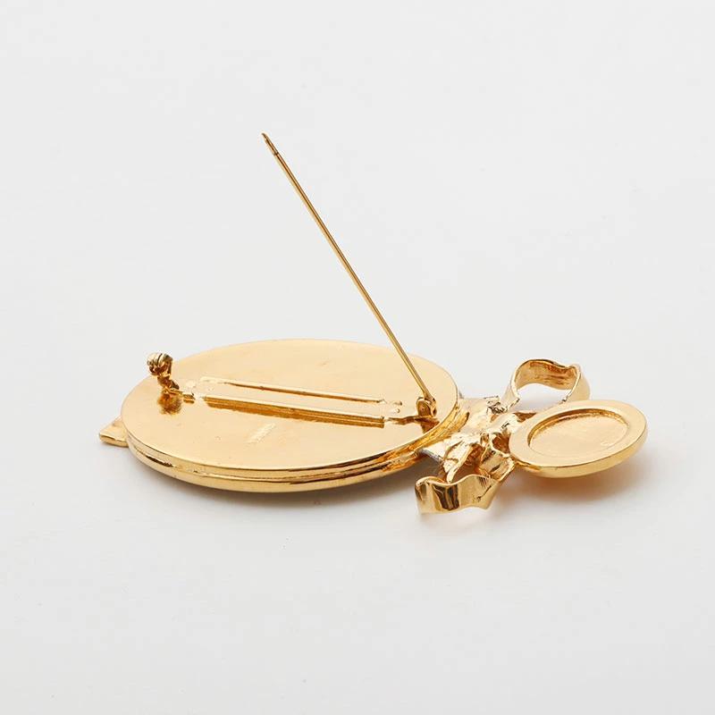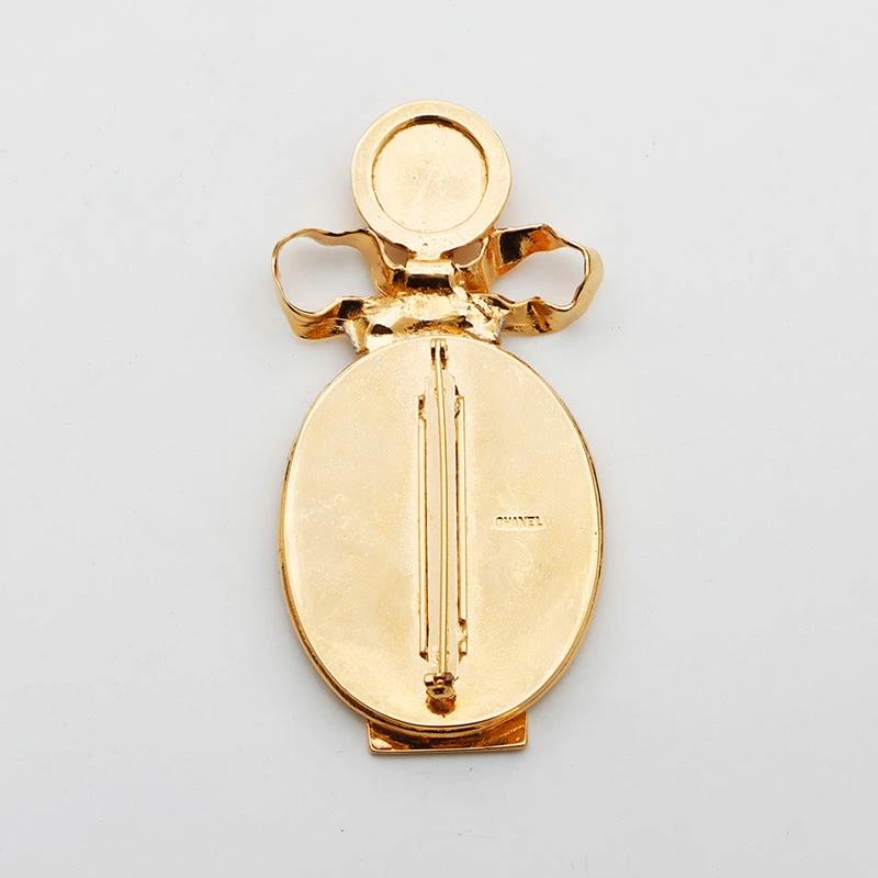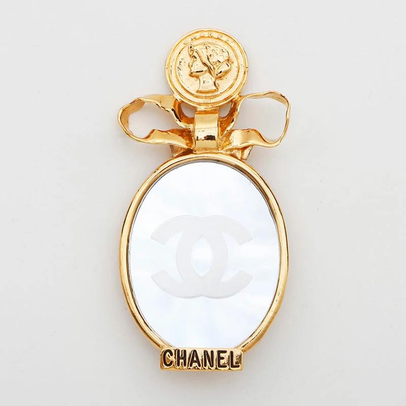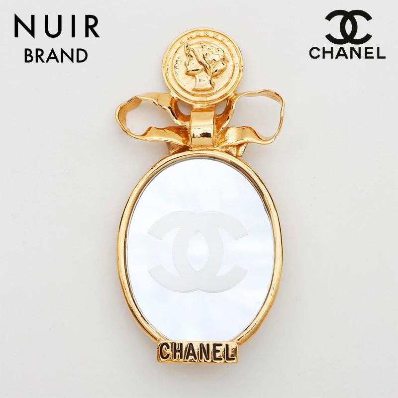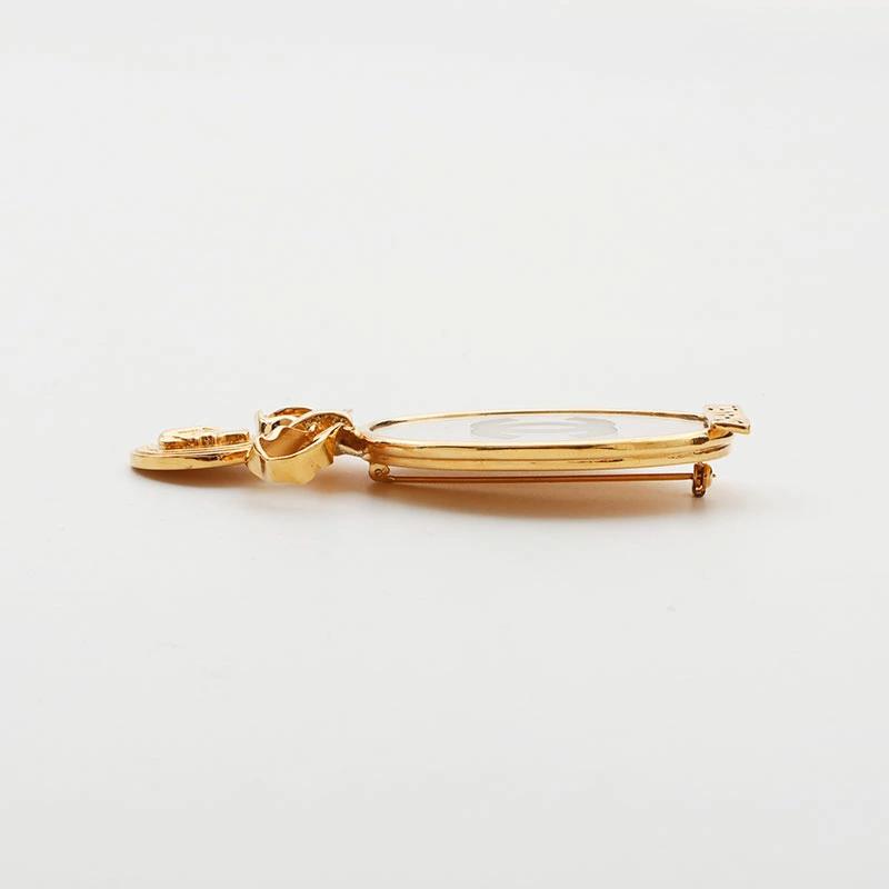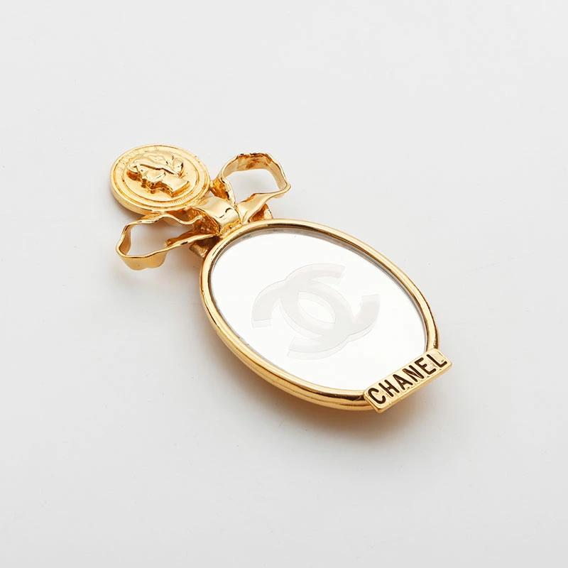 Pre-owned Chanel Coco Mark Mirror Brooch, Gold, WS11756