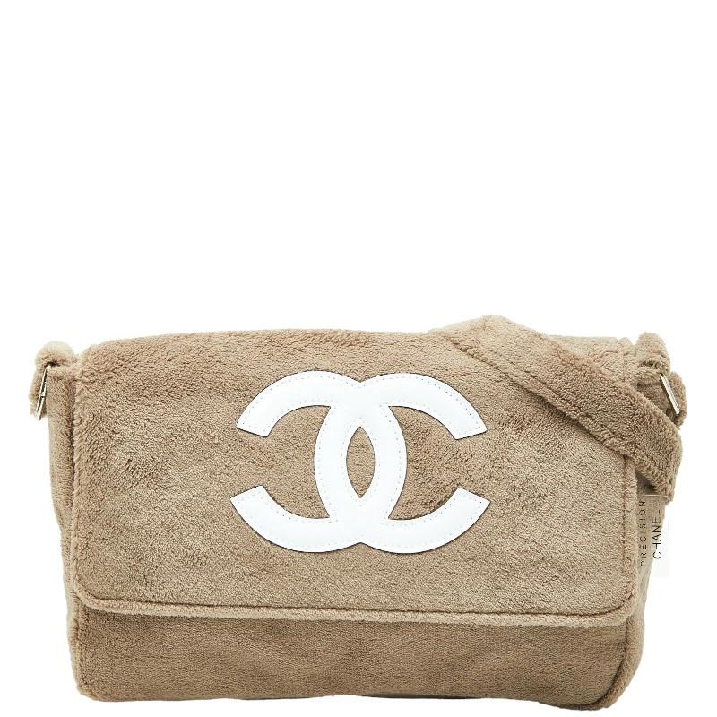 Pre-owned Chanel Coco Mark Novelty Crossbody Shoulder Bag in Beige and White with Pile.