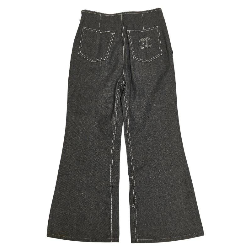 - シャネル ココマーク デニムパンツ フレアパンツ サイズ36 P17666V09976 グレー コットン ラインストーン レディース CHANEL 【中古】