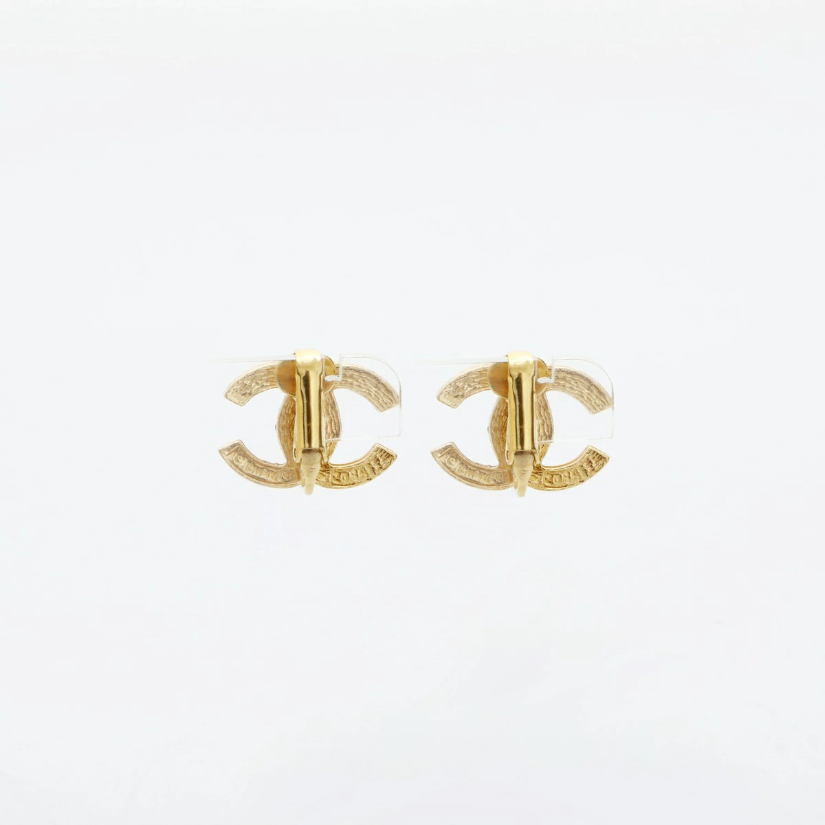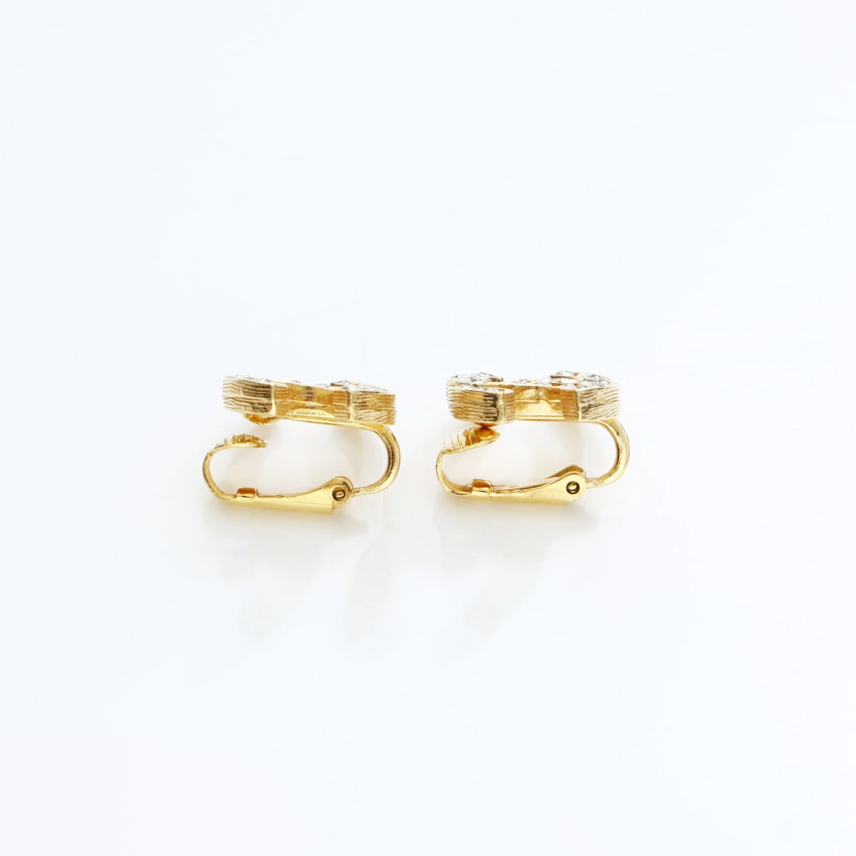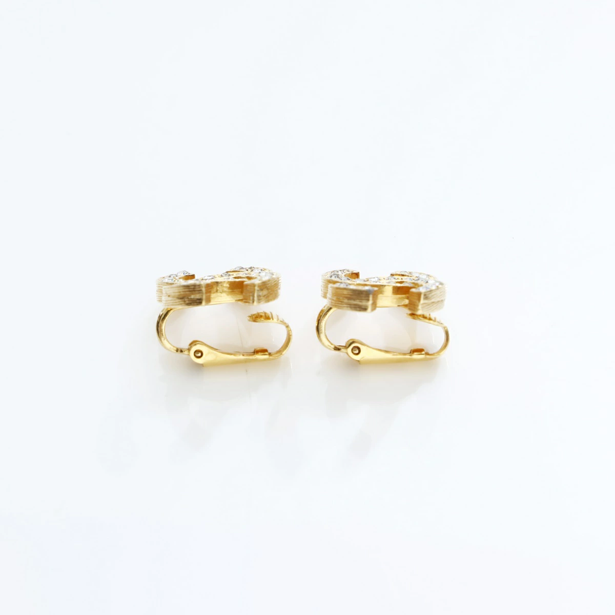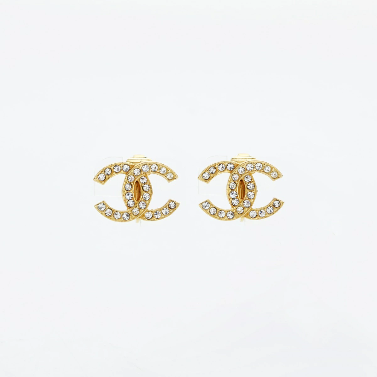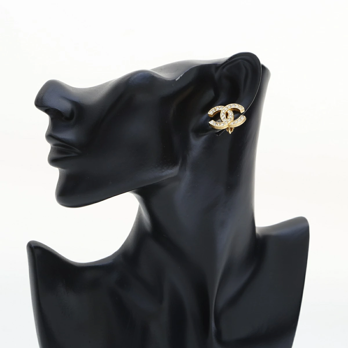 Pre-owned Chanel Coco Mark Rhinestone Earrings, Gold, 1954-1985, WS23220