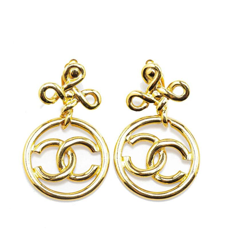Pre-owned Chanel Coco Mark Round Circle Earrings, Gold Plated, Women's.