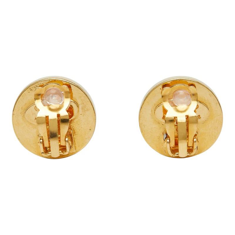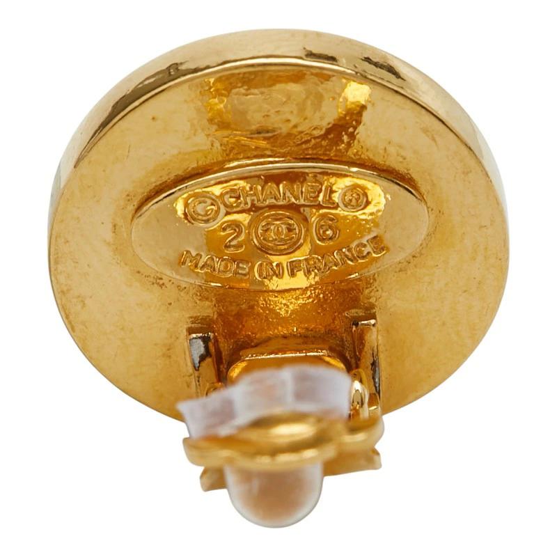 Pre-owned Chanel Coco Mark Round Earrings in Gold and Black Plated Leather.