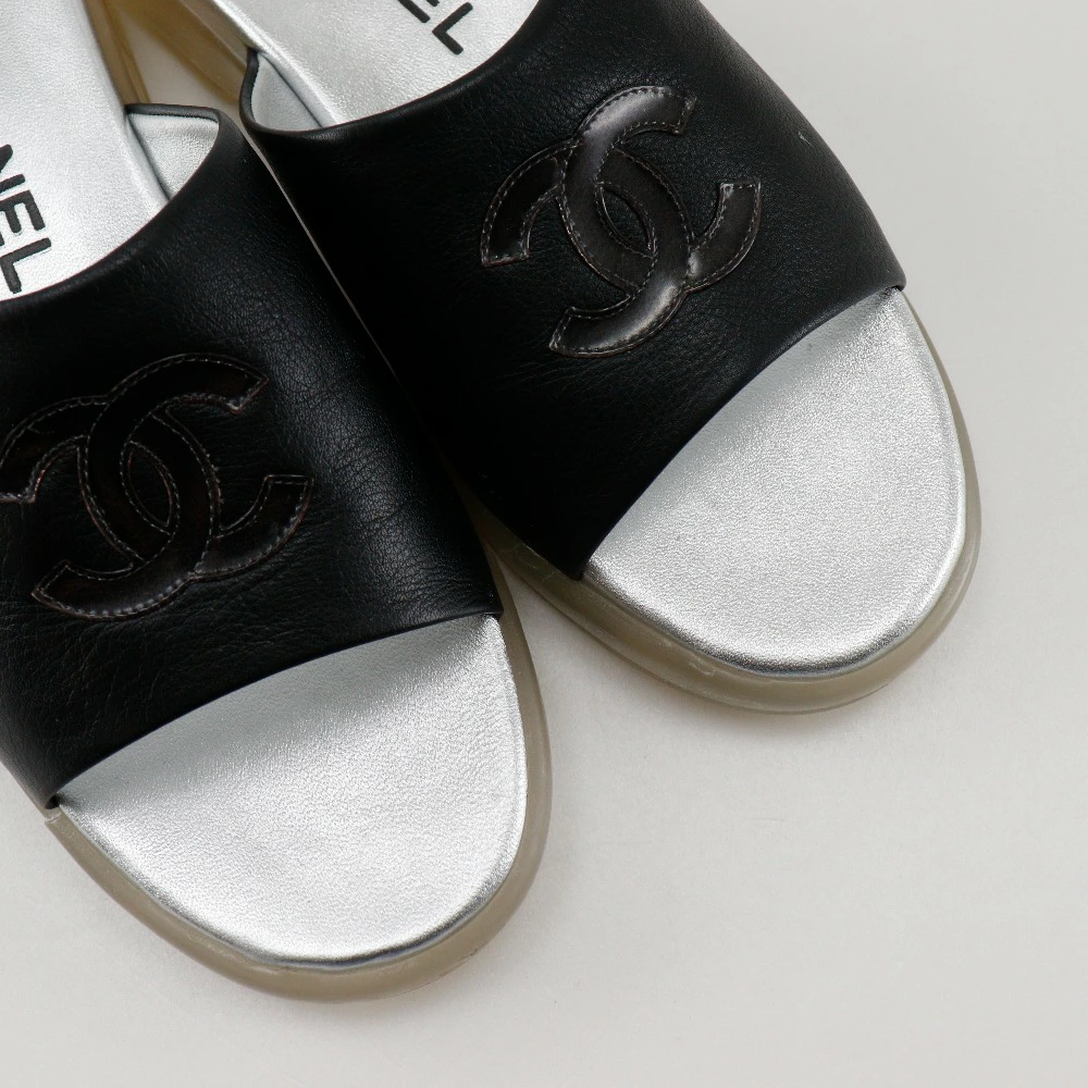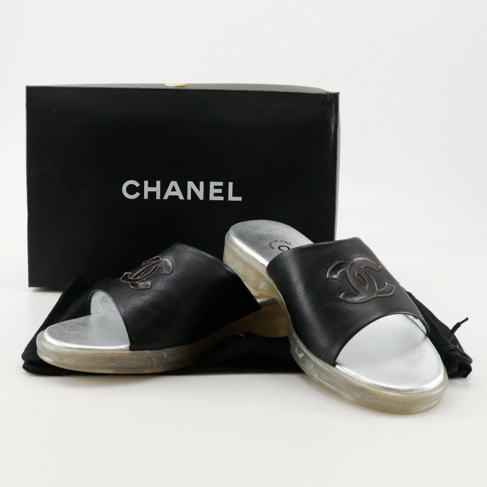 Pre-owned CHANEL COCO Mark sandals in black leather for women