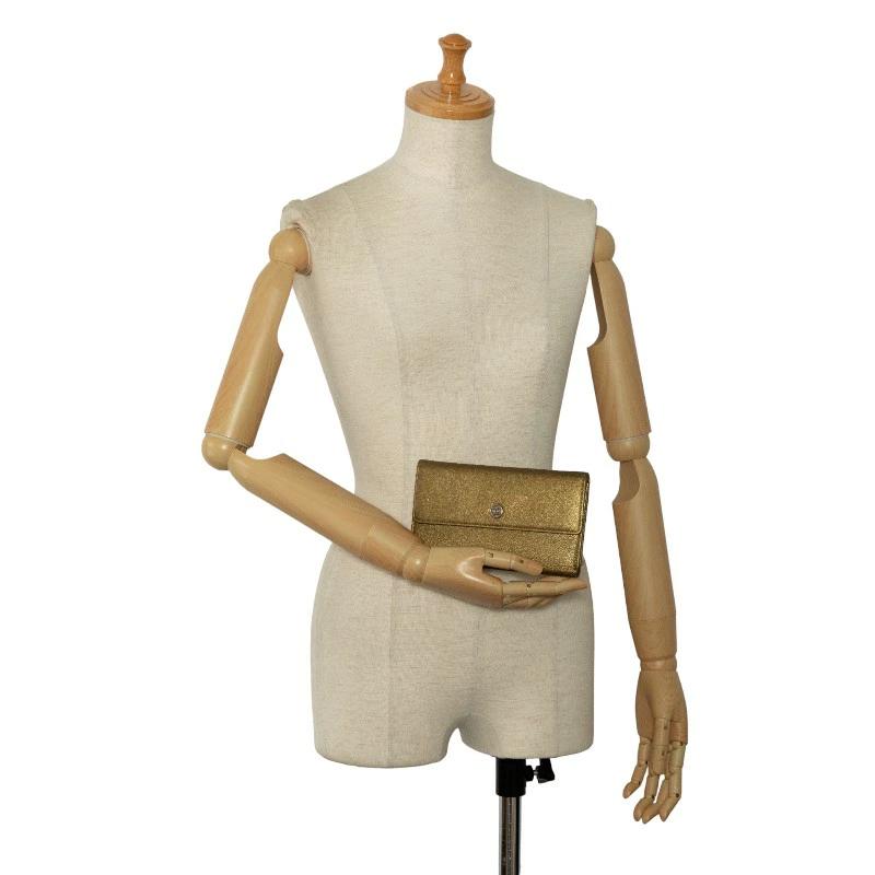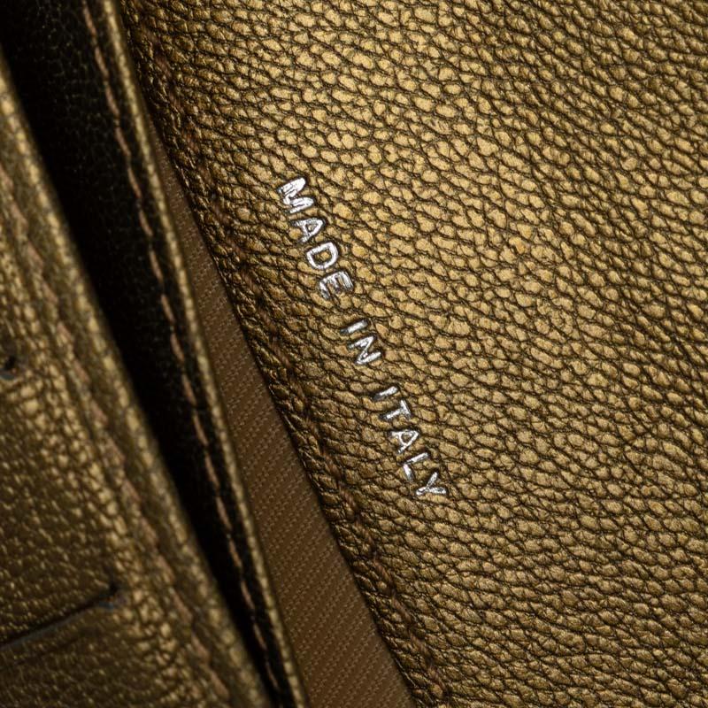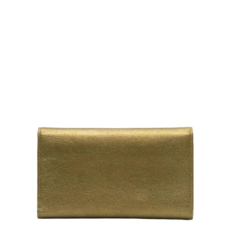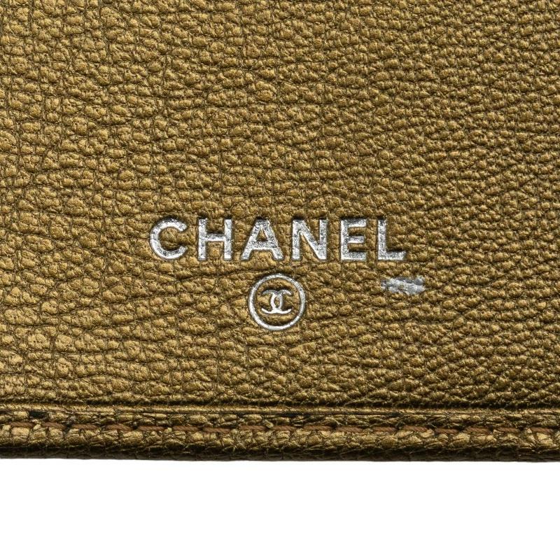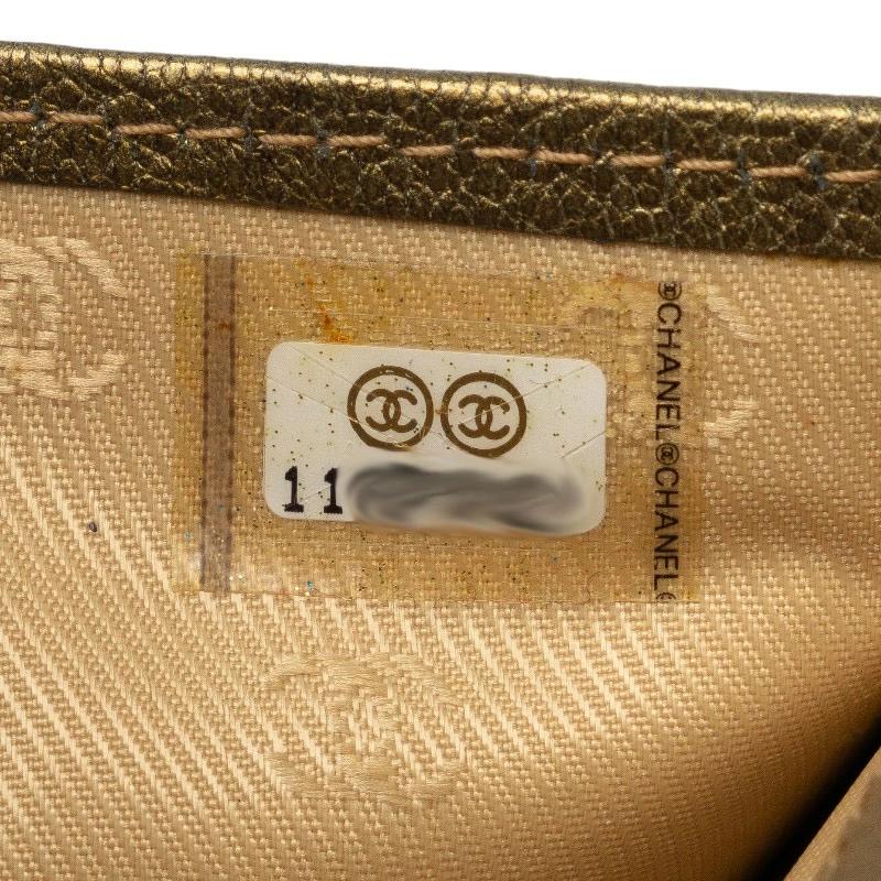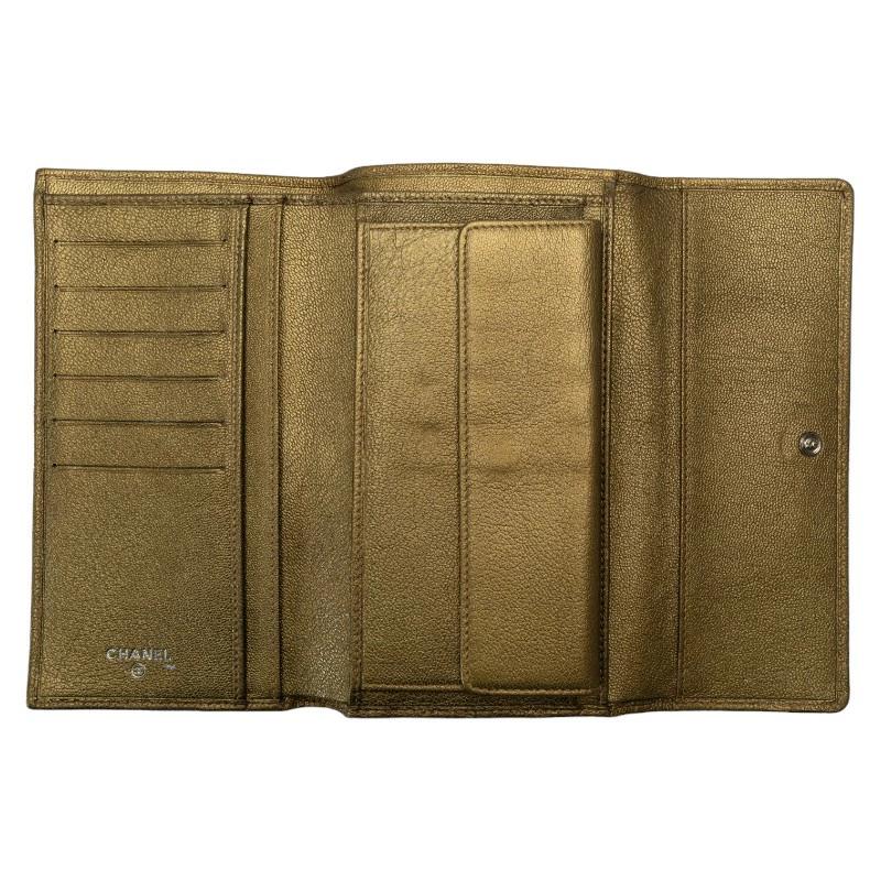 Pre-owned Chanel Coco Mark Tri-fold Wallet in Metallic Khaki Leather.