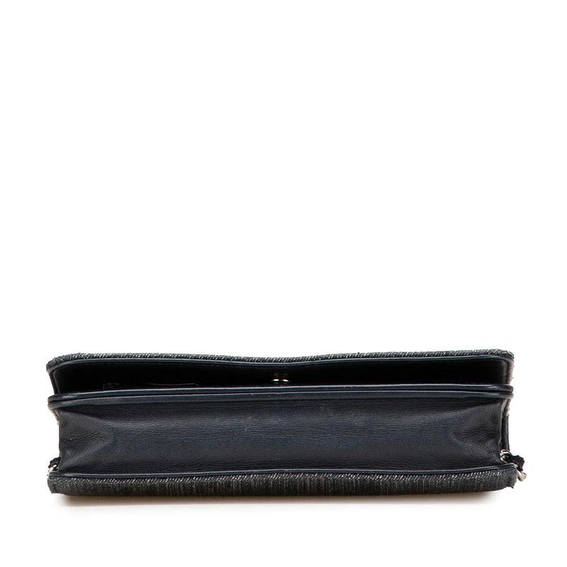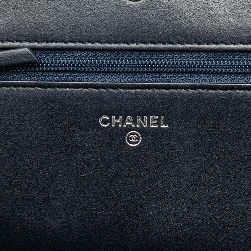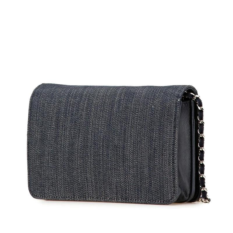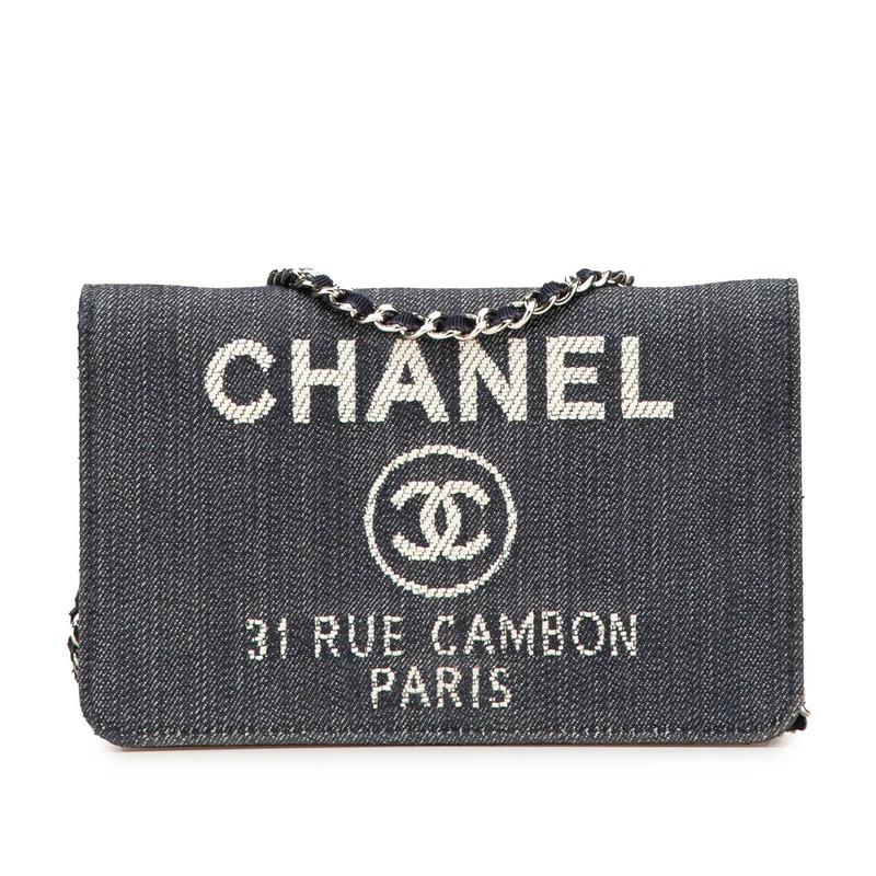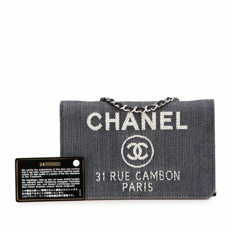 Pre-owned Chanel Deauville Chain Wallet A80795 in Navy and White Denim with Leather.