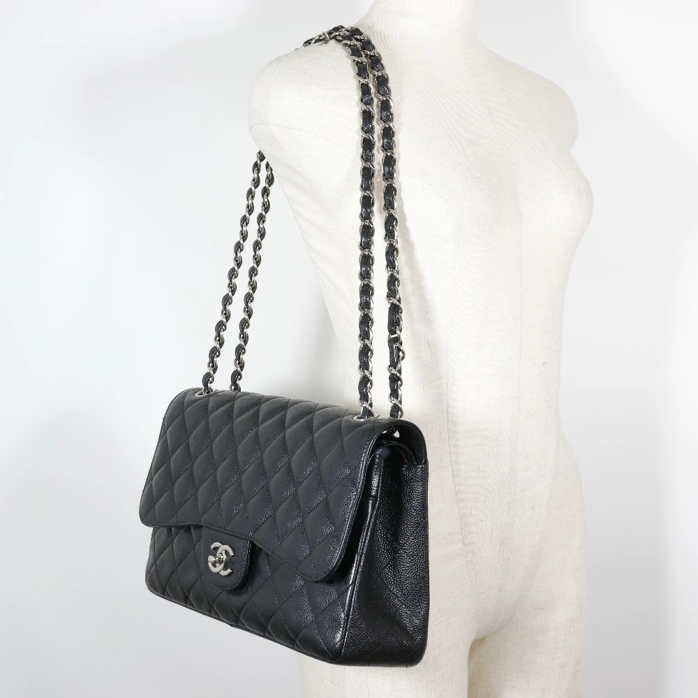 Pre-owned CHANEL Deca Matelasse 30 Shoulder Bag with Chain Shoulder Strap, Double Flap, A58600, Caviar Leather, Made in Italy, Black, Crossbody, A5, Turn Lock, Women's, Rank A