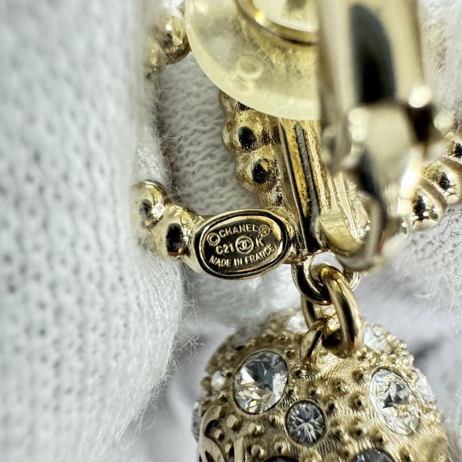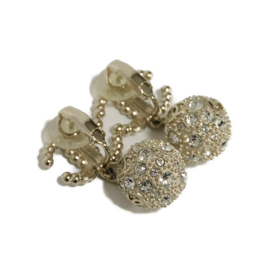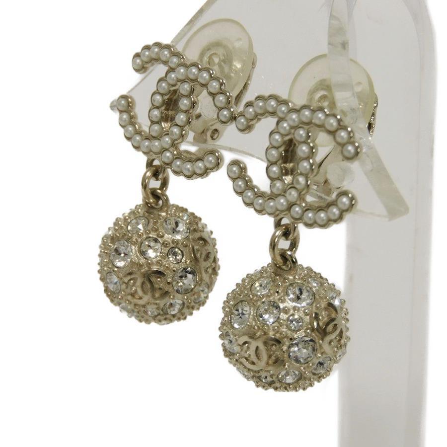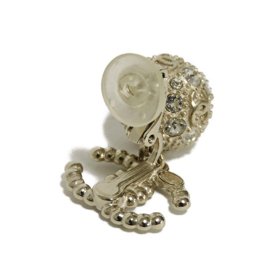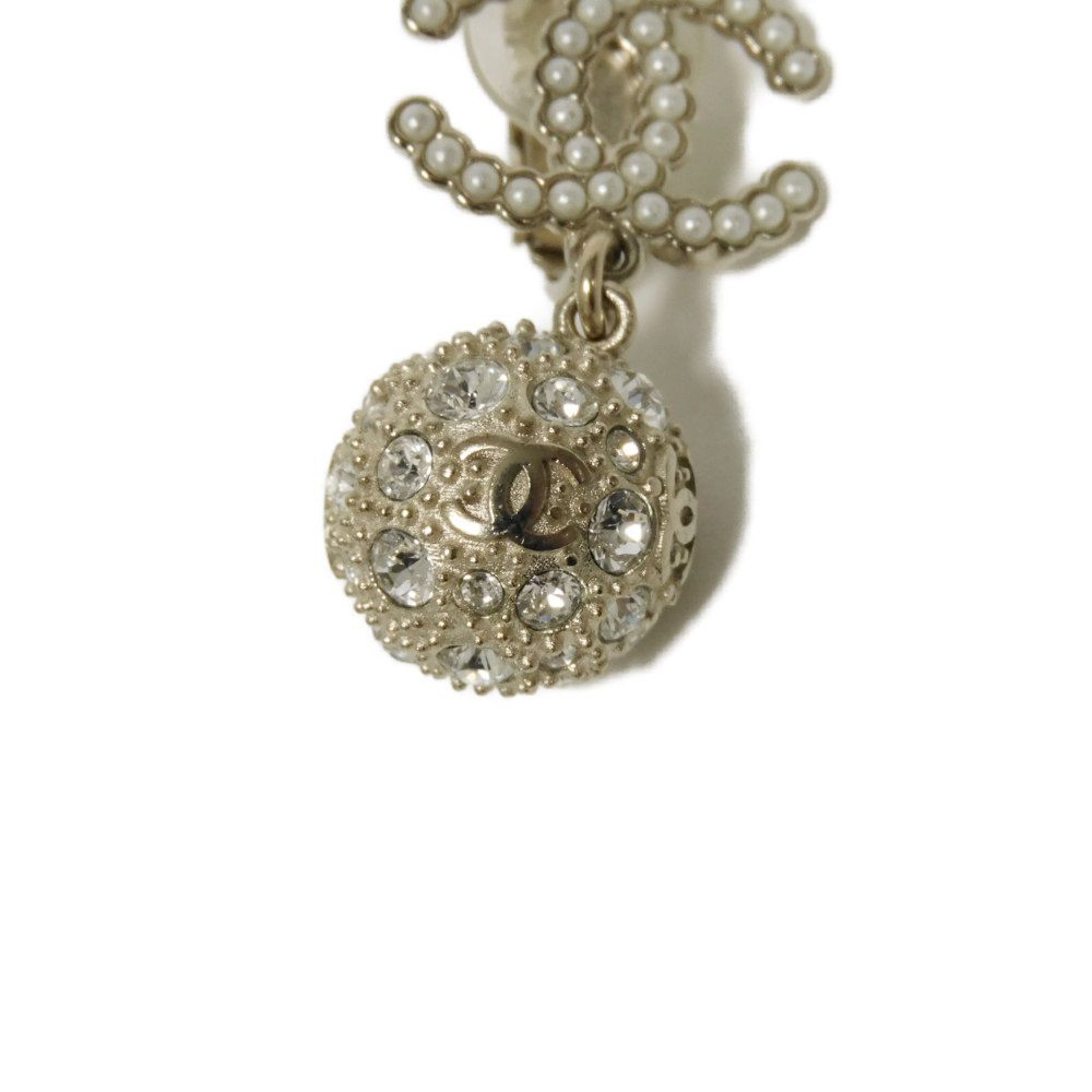 | シャネルのCCマークとボールにパールとラインストーンが装飾された「ココマーク パール クリスタル スイング ボール」クリップ式イヤリングです。 |
