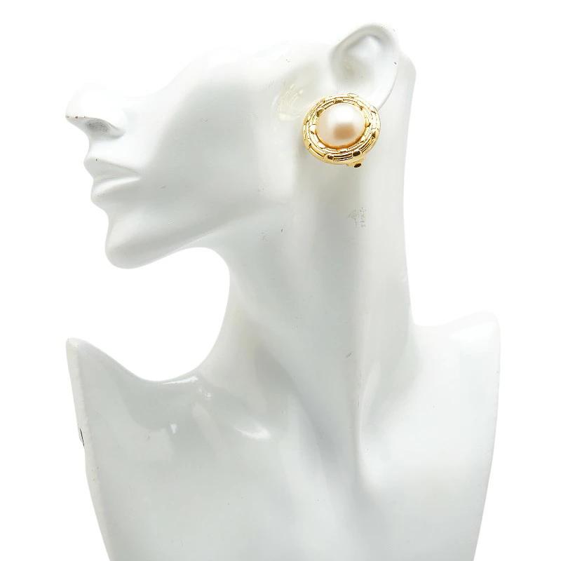 Pre-owned Chanel earrings, gold plated with faux pearls, for women.