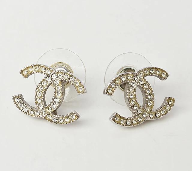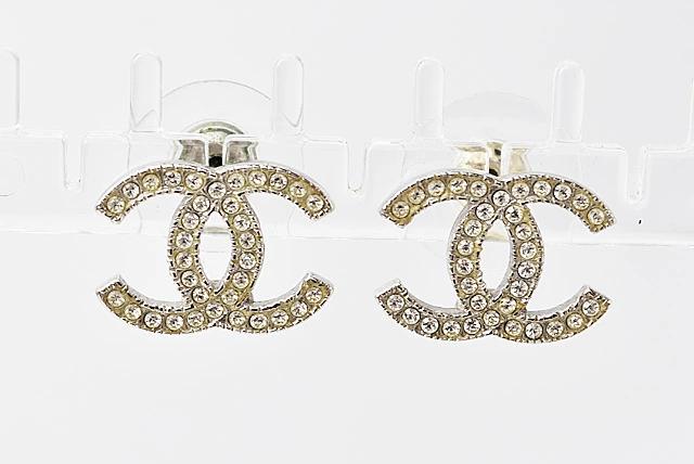 CHANEL ピアス CCマーク ラインストーン シルバー