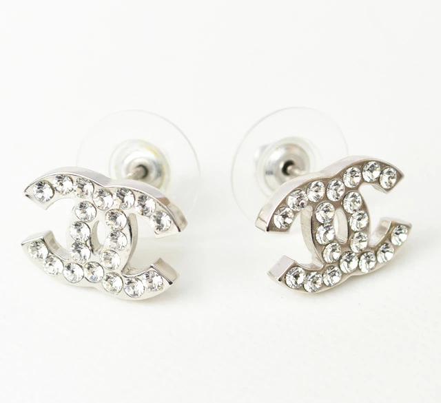 CHANEL ピアス CCマーク ラインストーン シルバー