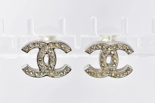 CHANEL ピアス CCマーク ラインストーン シルバー