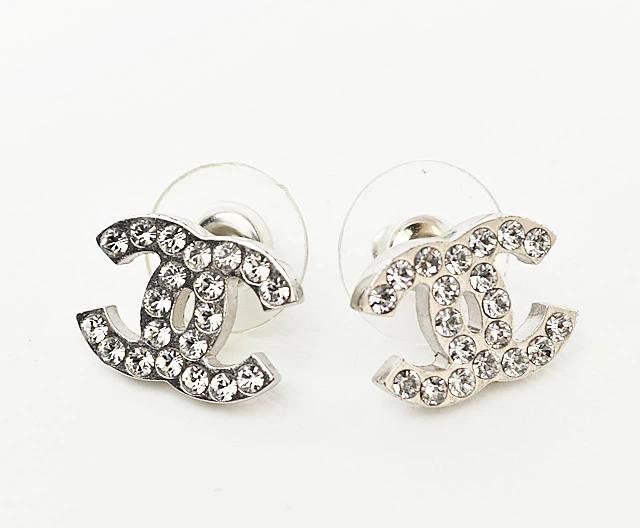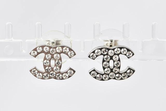 CHANEL ピアス CCマーク ラインストーン シルバー
