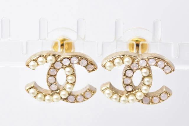 CHANEL ピアス CCマーク ラインストーン/パール ゴールド/ローズ