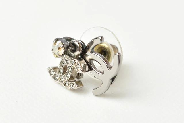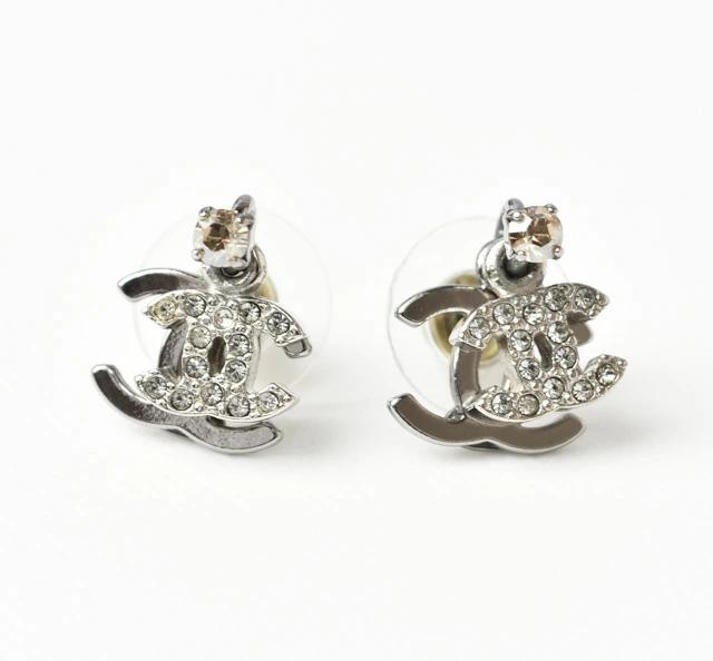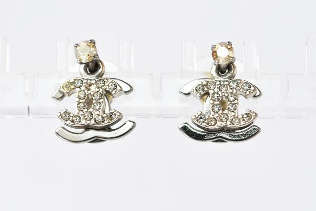 CHANEL ピアス ダブルCCマーク ラインストーン シルバー