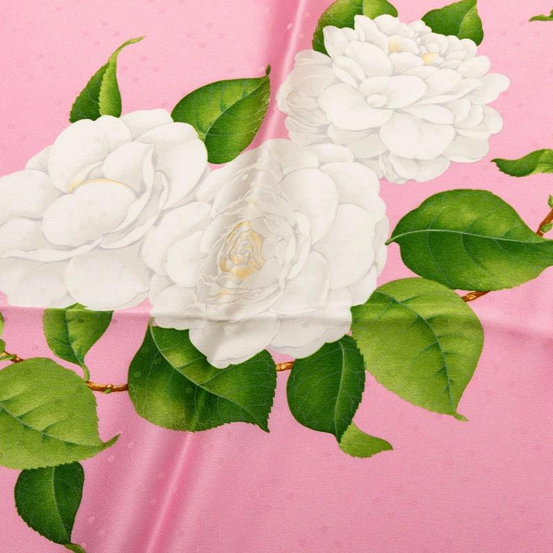 - シャネル フラワー 花 モチーフ スカーフ ピンク ホワイト シルク レディース CHANEL 【中古】