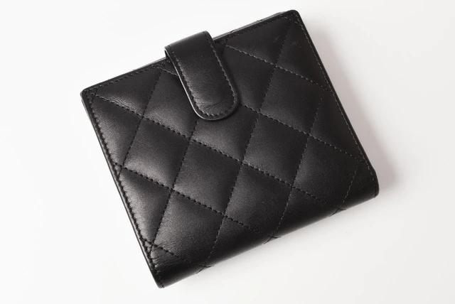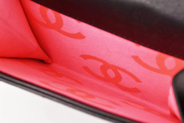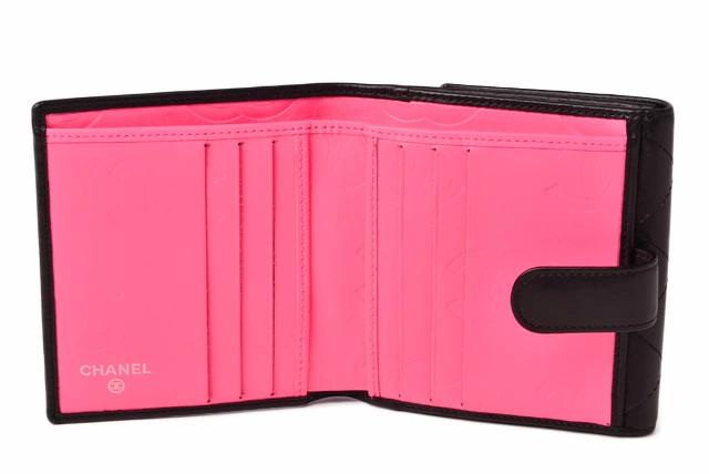 シャネルより、カンボン・ラインのダブルホック折財布です。大変人気があり、入手困難。キルティングステッチ×CCマークの人気シリーズです。内側ピンクにもCCロゴが型押しされています。 中でもピンク系のカラーは、大人気で、直営店でも完売が続いております。コンパクトながら、ポケットも充実しており、すっきり整頓できます。