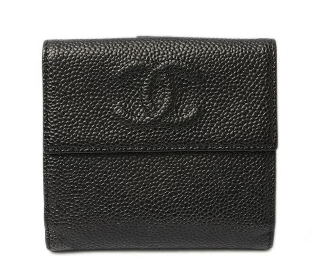 CHANEL 折財布 ダブルホック式 キャビアスキン ブラック