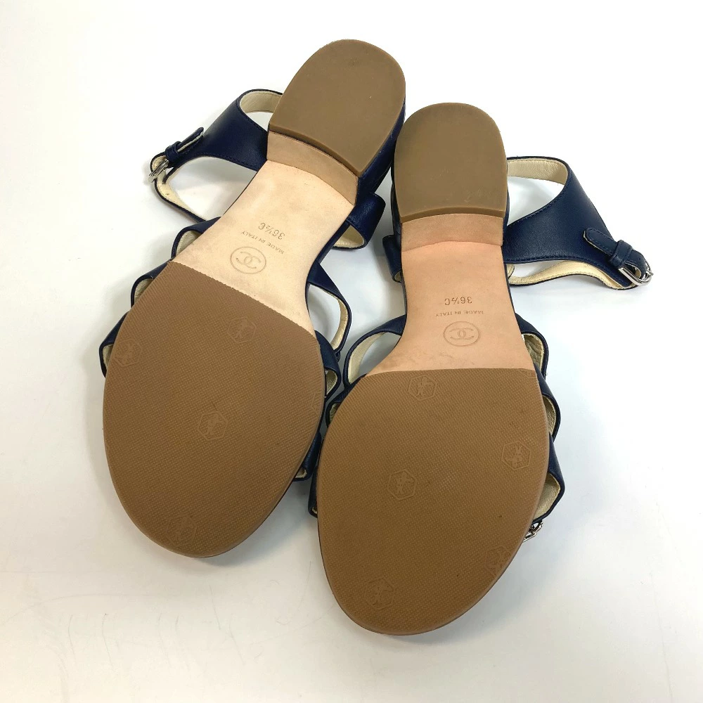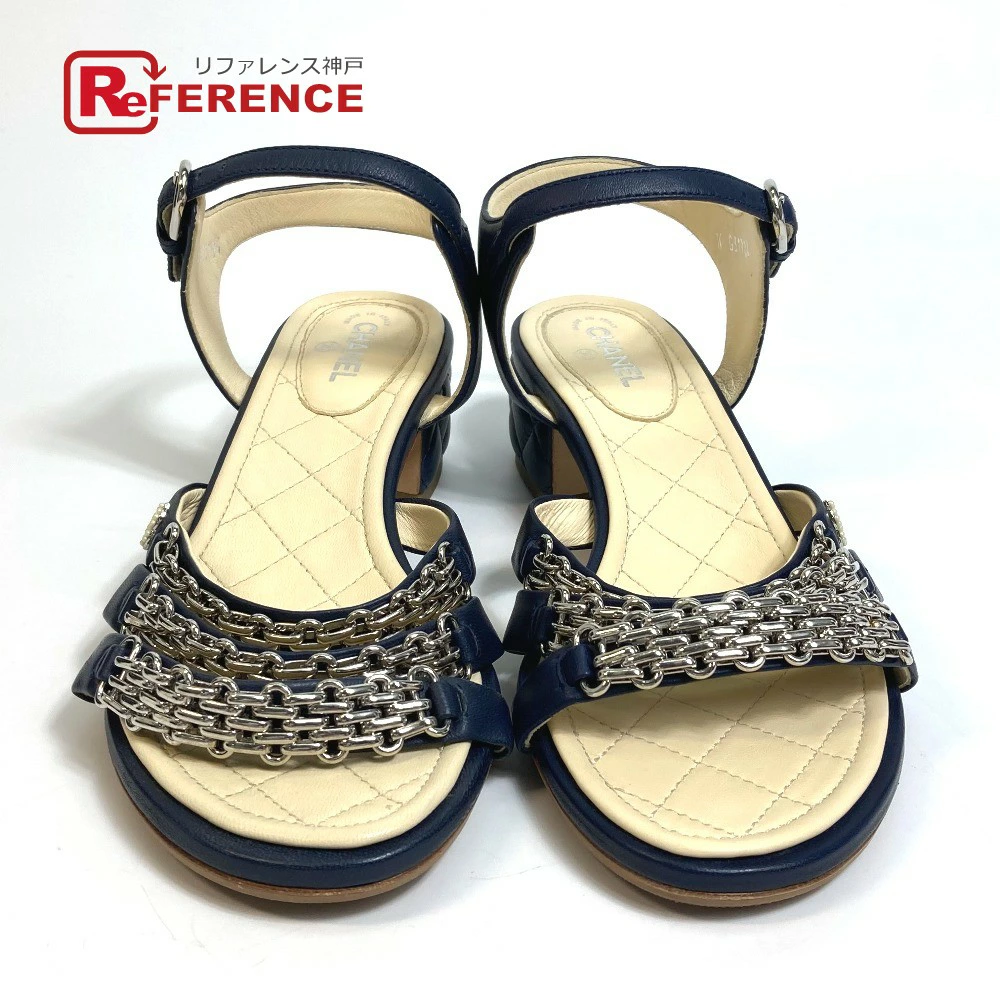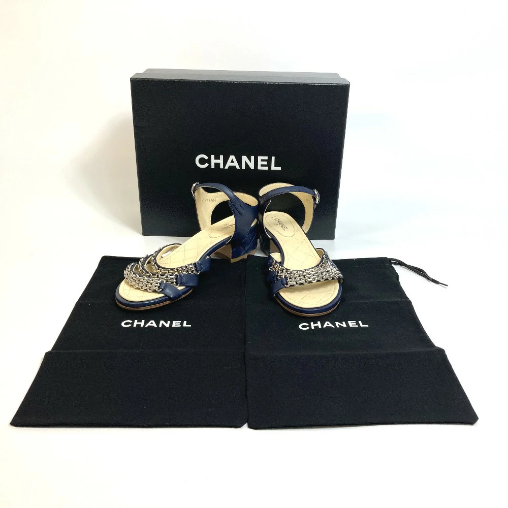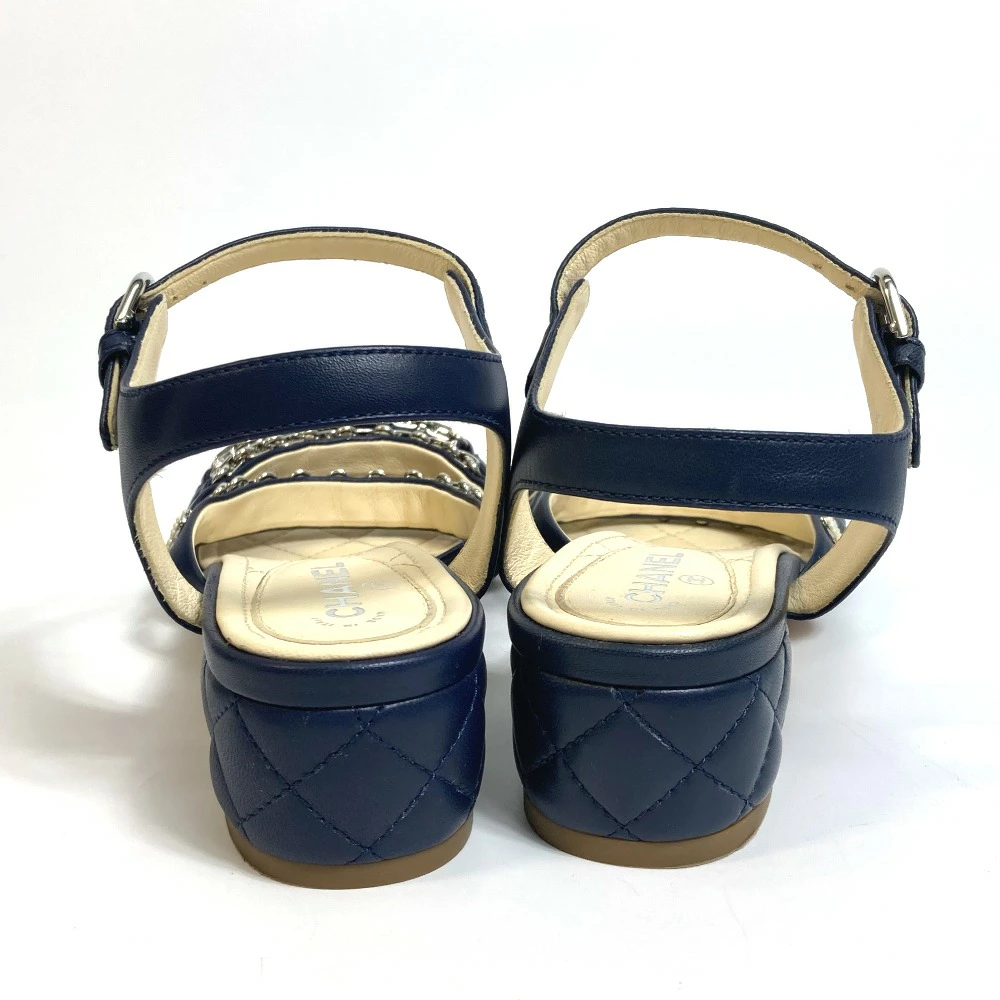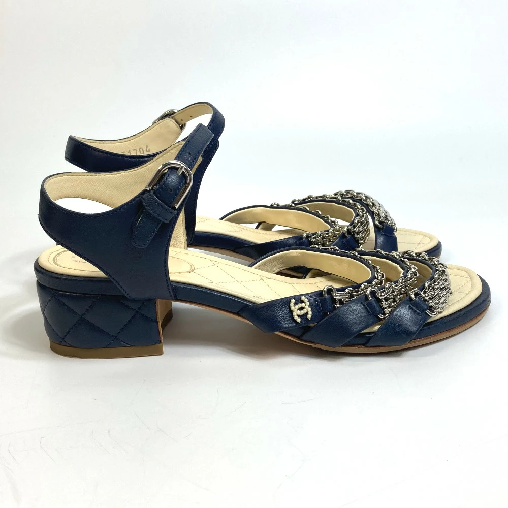| 商品説明 | 綺麗なネイビーカラーにシルバー金具のチェーンを飾ったアンクルストラップのサンダルです。 |