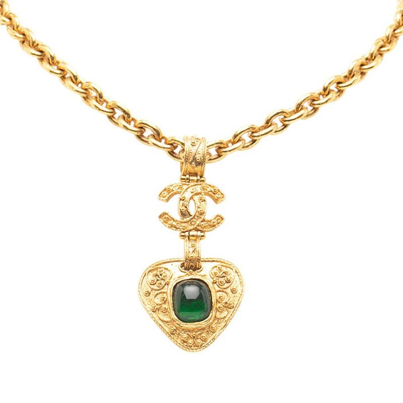 Pre-owned Chanel Gripois Long Color Stone Chain Necklace in Gold and Green Plated for Women.