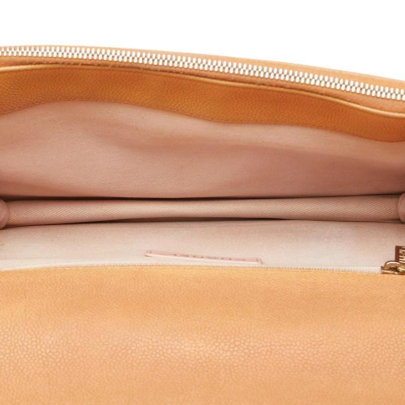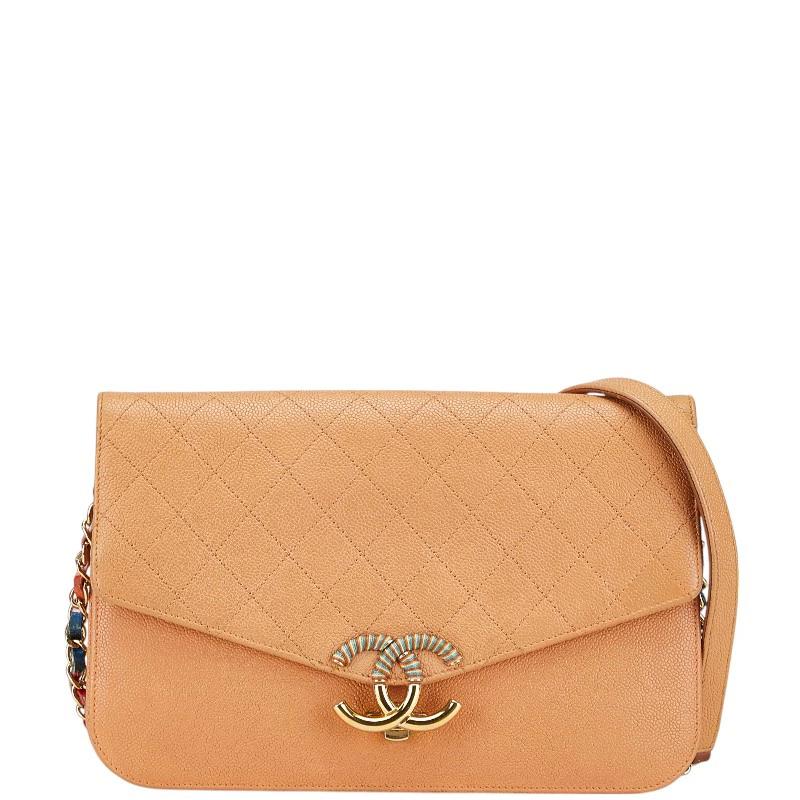 Pre-owned Chanel Half Coco Crossbody Chain Shoulder Bag in Orange and Beige Caviar Skin.