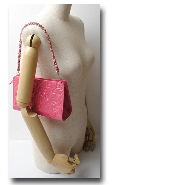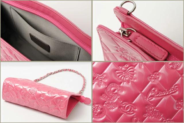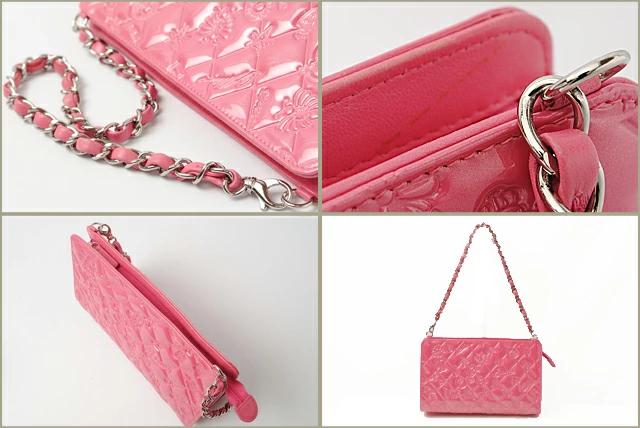 アクセサリーポーチ/ショルダーバッグ チェーン アイコン A37156 パテントレザー ピンク