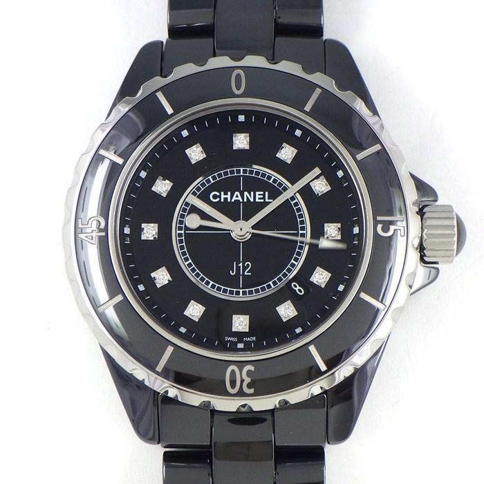 ■商品名CHANEL 腕時計 J12 H1625 デイト 12ポイント ダイヤインデックス ブラック文字盤 SS ブラックセラミック クオーツアナログ 【中古】