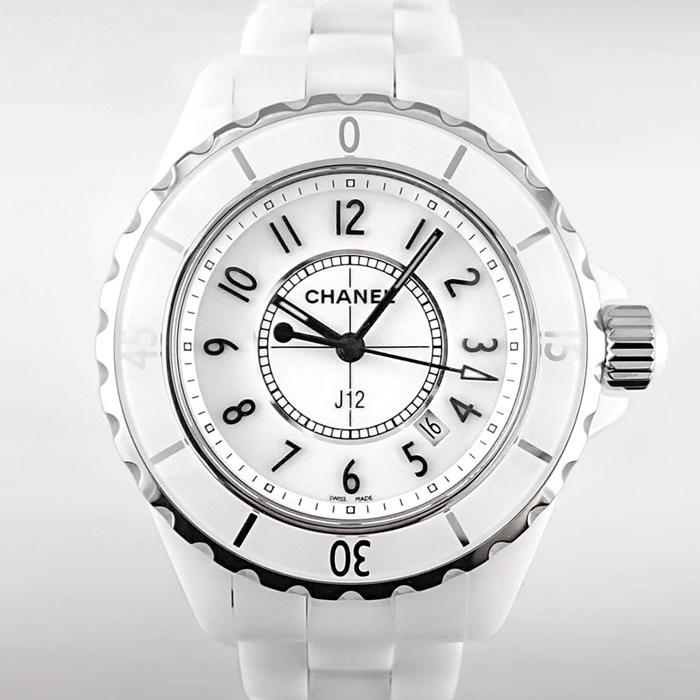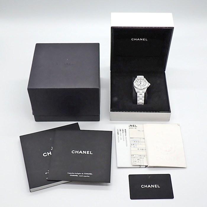 ■商品名CHANEL 腕時計 J12 H0968 デイト 回転ベゼル 夜光インデックス 夜光針 ブラックインデックス ホワイト文字盤 SS ホワイトセラミック クオーツアナログ 【中古】