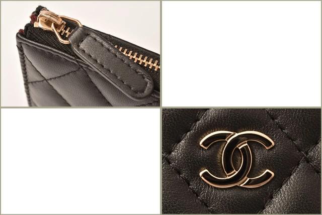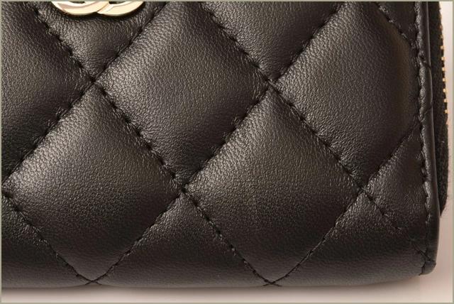CHANEL キーリング付 A68943 マトラッセ ブラック/ボルドー ゴールド金具