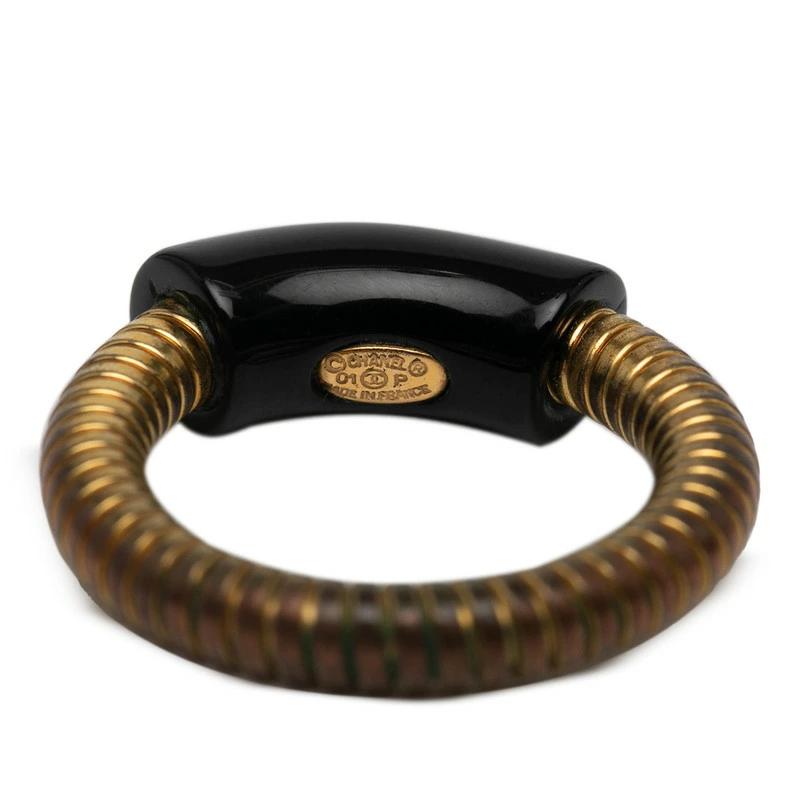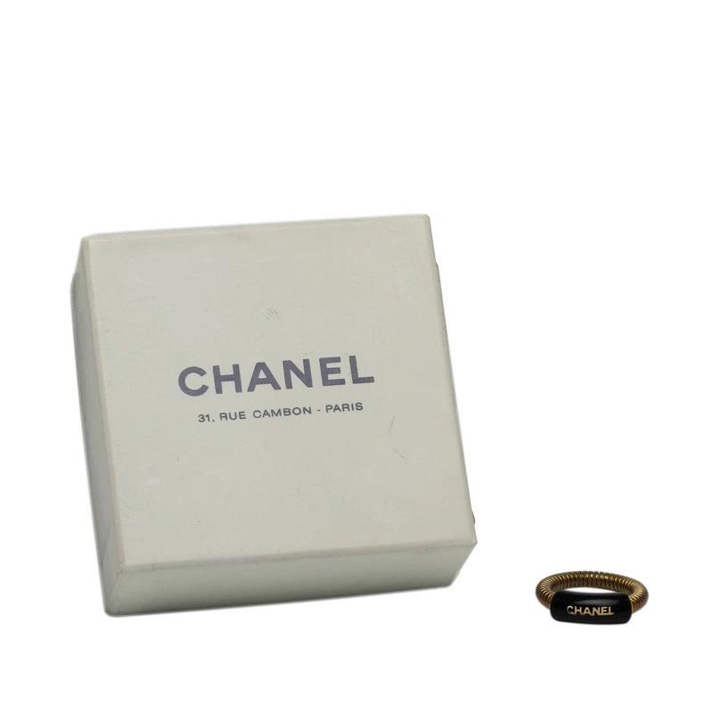 Pre-owned Chanel logo ring in gold and black plated for women.