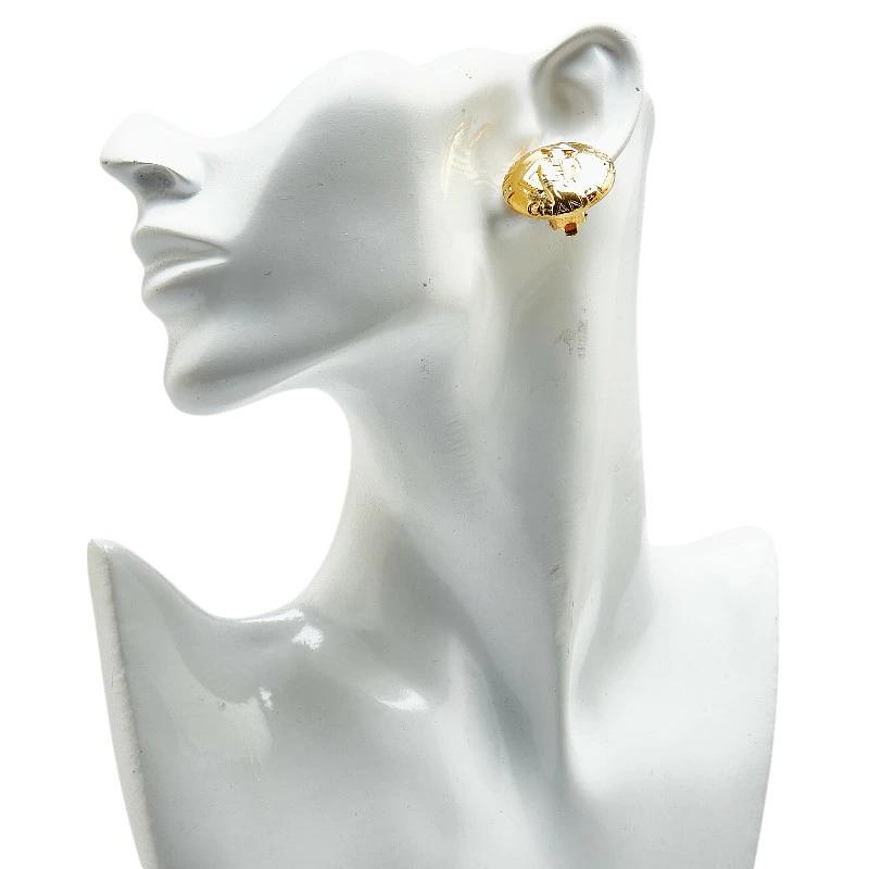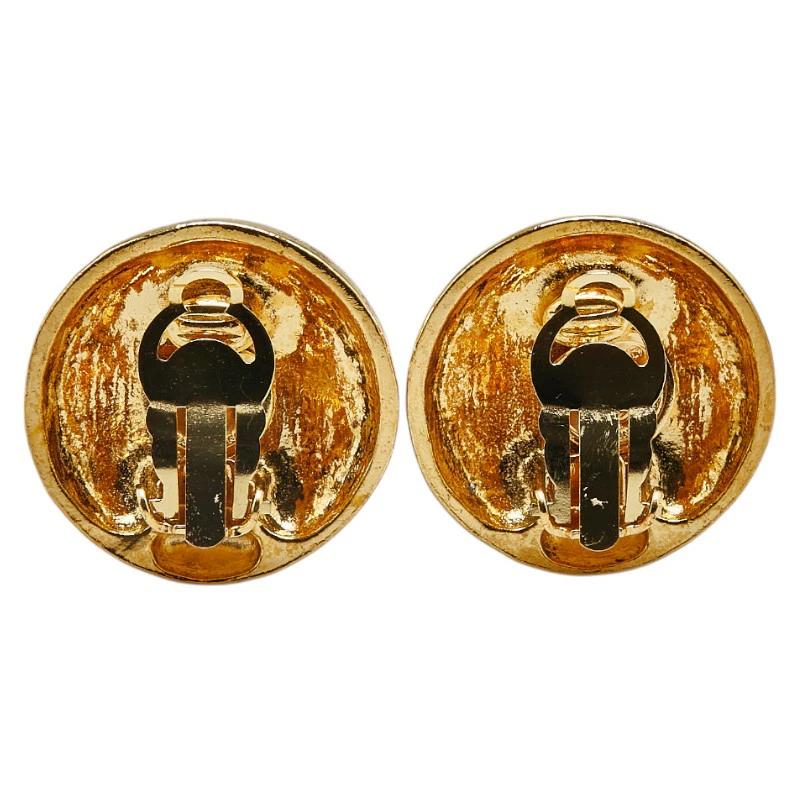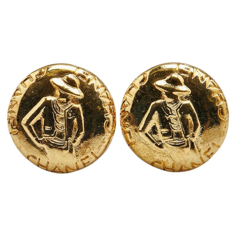 Pre-owned Chanel Mademoiselle Round Earrings, Gold Plated, Women's
