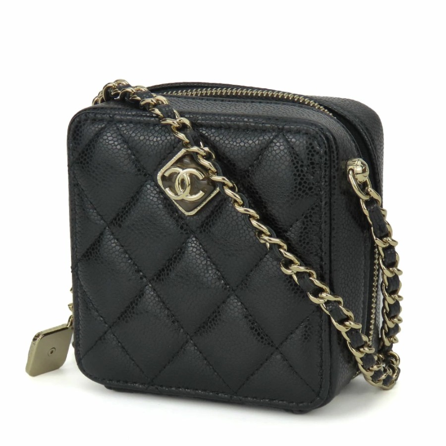 品名【中古】 シャネル ショルダーバッグ マトラッセ キャビアスキン ブラック ゴールド金具 ミニバッグ 22A ココマーク レディース 女性 CHANEL