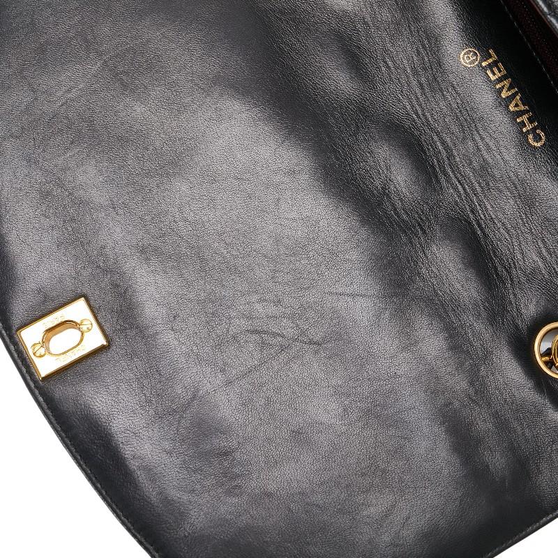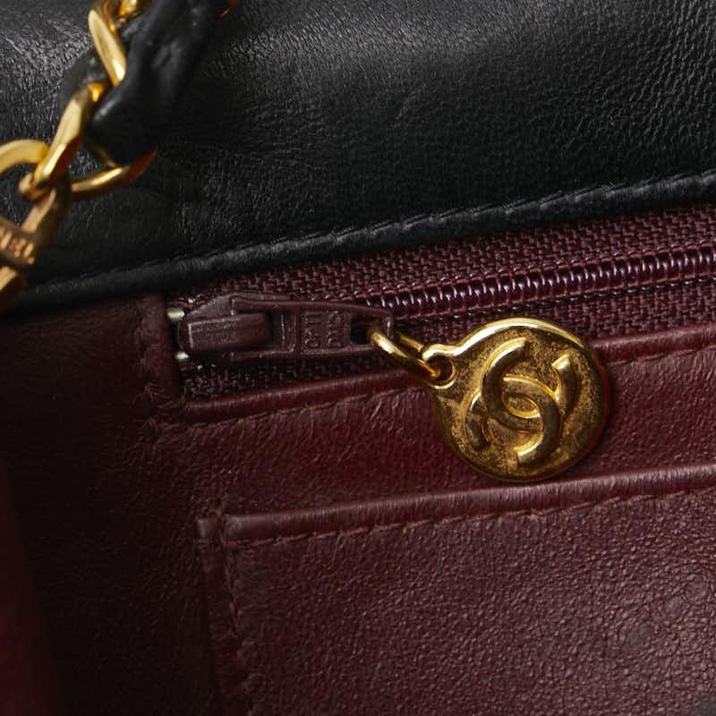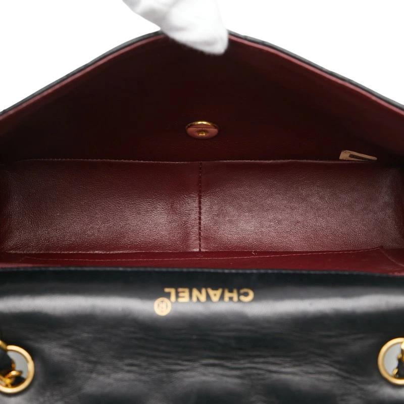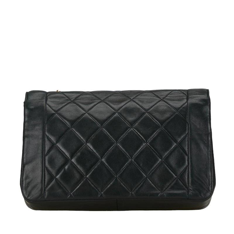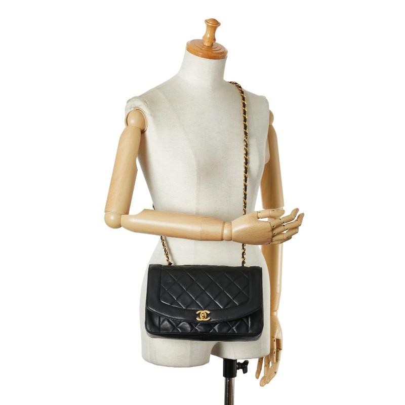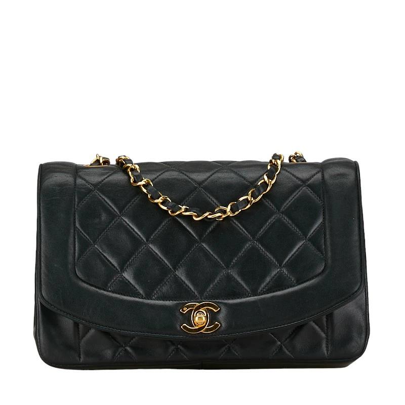 Pre-owned Chanel Matelasse 25 Diana Shoulder Bag in Black Lambskin with Gold Hardware and Chain.